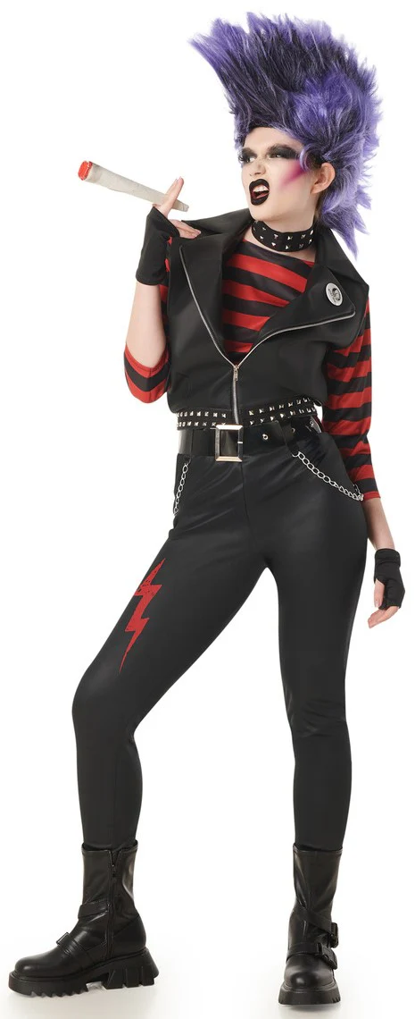 Stai cercando un costume da punk per la tua festa? Con il costume da punk rock per donna avrai il vestito perfetto per travestirti da cantante punk rock o come un membro di questa tribù urbana nata negli anni ’70, caratterizzata dalla sua estetica ribelle e trasgressiva, e trionferai alla tua festa in maschera.