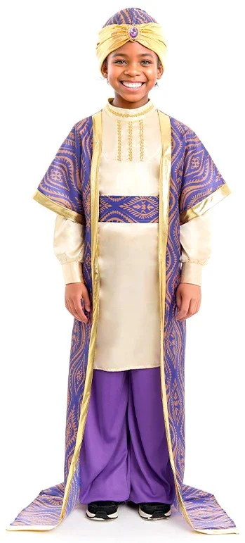 Stai cercando un costume di Baltasar per tuo figlio? Con il costume da re magio Baltasar per bambini in colore viola avrai il vestito perfetto per travestire tuo figlio nella recita di Natale della scuola e sarà il bambino più elegante della festa natalizia.