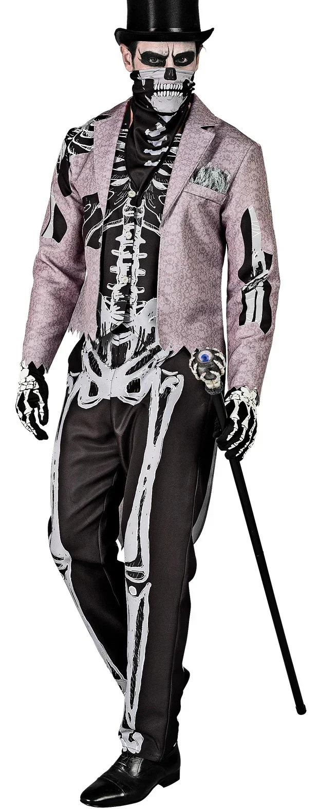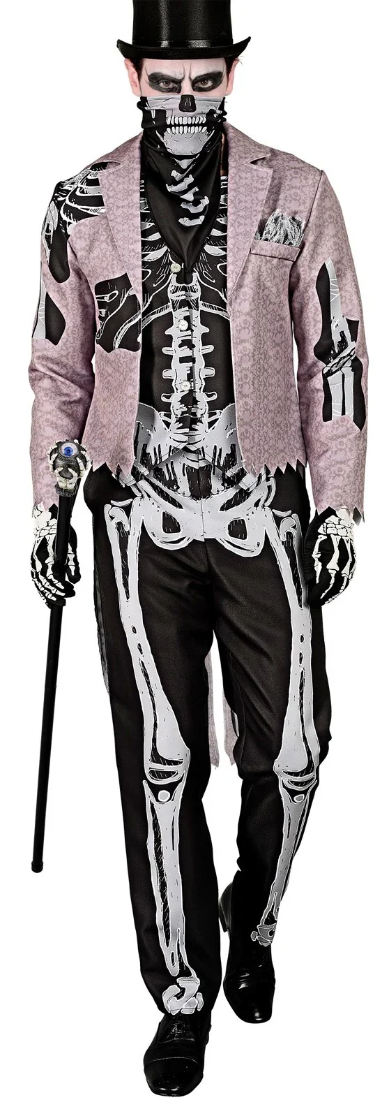 Stai cercando un costume elegante di Halloween per la tua festa? Con il costume da cavaliere scheletro con frac per uomo avrai l’abito più elegante per travestirti da terrificante scheletro alla tua festa di Halloween.