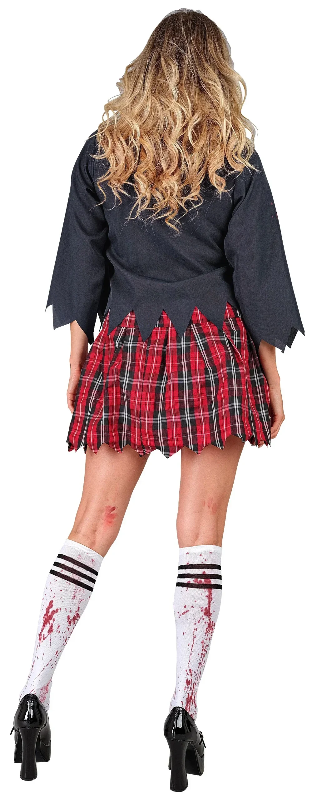 Stai cercando un costume da zombie per la tua festa? Con il costume da studentessa zombie per donna avrai il vestito perfetto per travestirti da sanguinaria studentessa morta vivente con la sua uniforme scolastica e trionferai alla tua festa di Halloween.
