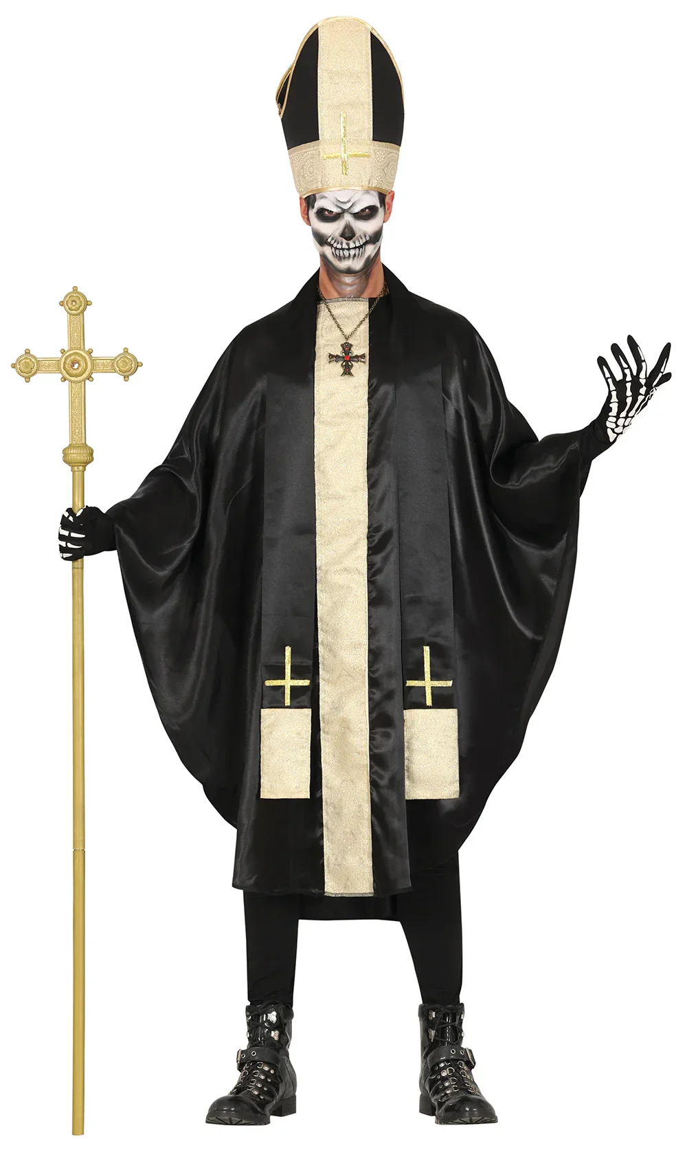 Stai cercando un costume originale per la tua festa di Halloween? Con il costume da vescovo malvagio per adulto avrai il vestito più terrificante per travestirti da vescovo, papa o cardinale del male e trionferai alla tua festa di Halloween.