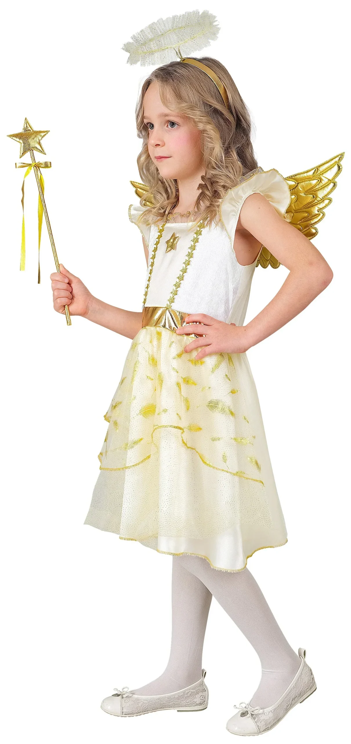 Stai cercando un costume da angelo per tua figlia? Con il costume da angelo celestiale per bambini in colore dorato e bianco avrai il vestito più bello per travestire tua figlia come questi messaggeri di Dio nella religione cristiana e sarà la bambina più bella della festa in maschera.