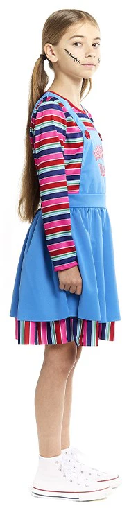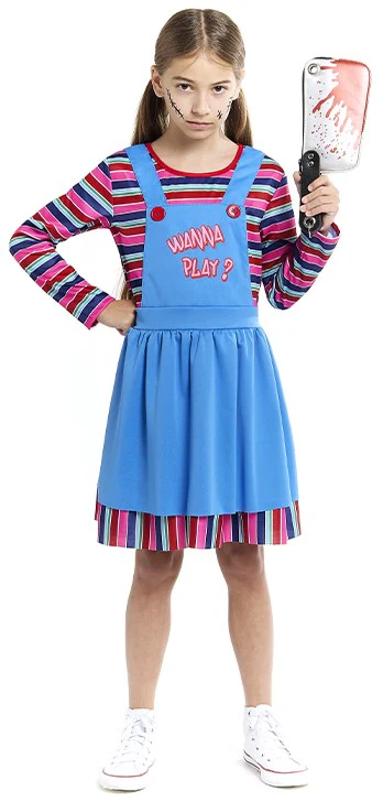 Stai cercando un costume di Halloween per tua figlia? Con il costume da bambola assassina per bambini avrai il vestito perfetto per travestire tua figlia come questo malvagio personaggio dei film di “Muñeco Diabólico” e sarà la bambina più bella della festa di Halloween.