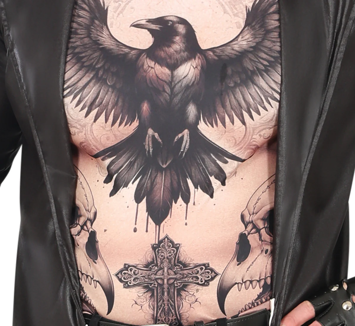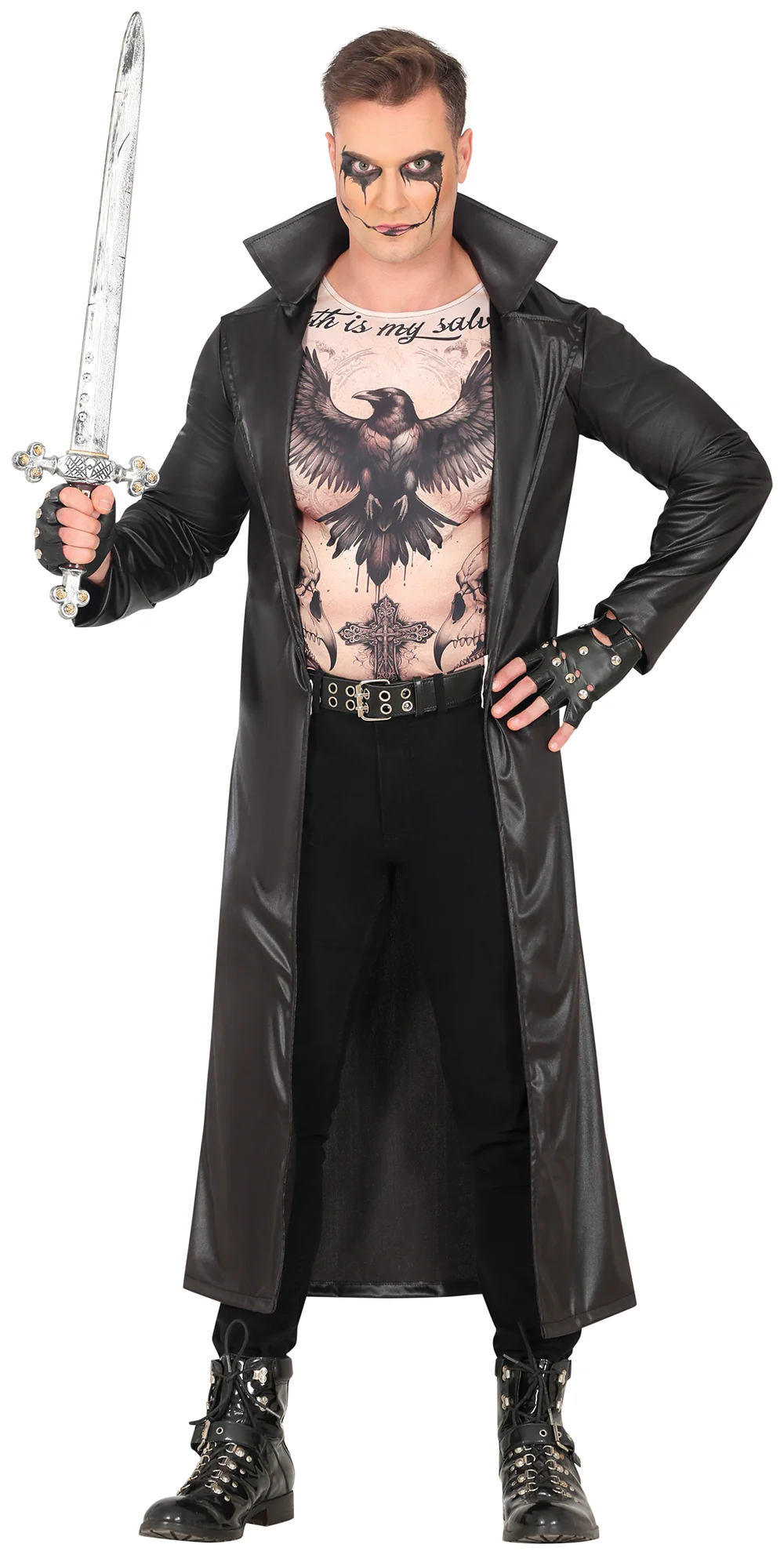 Stai cercando un costume di Halloween per la tua festa? Con il costume da Il Corvo per adulto con tatuaggi avrai il vestito perfetto per travestirti come questo personaggio gotico dei fumetti e dei film di “Il Corvo” che risorge per vendicarsi degli uomini che hanno ucciso lui e la sua fidanzata e trionferai alla tua festa di Halloween.