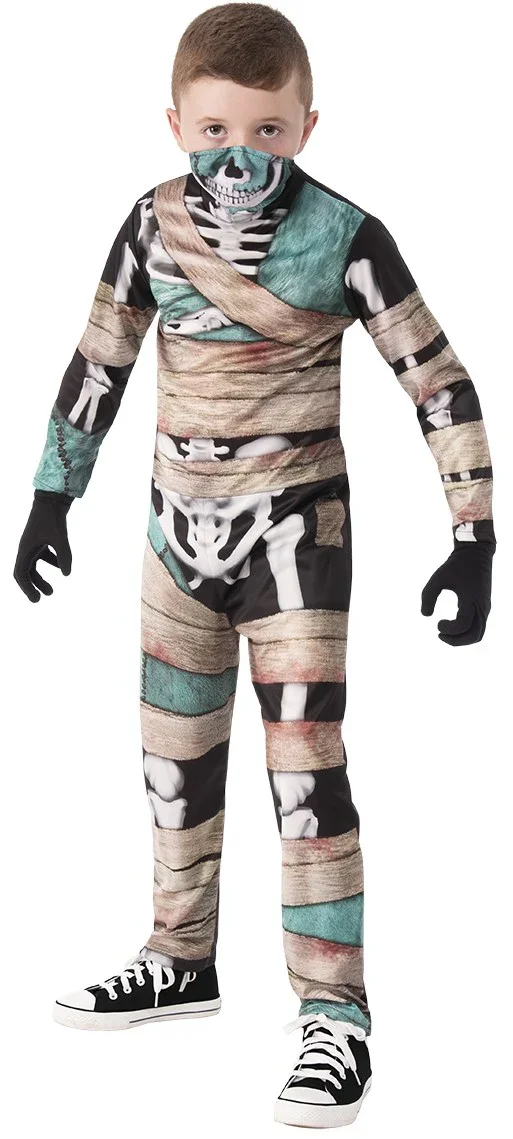 Stai cercando un costume da mummia per tuo figlio? Con il costume da mummia scheletro per bambini avrai il vestito perfetto per travestire tuo figlio come una terrificante mummia zombie e sarà il bambino più spaventoso della festa di Halloween.