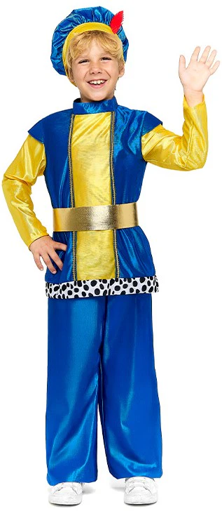 Stai cercando un costume da paggio dei Re Magi per tuo figlio? Con il costume da paggio reale per bambini in colore blu e giallo avrai il vestito perfetto per travestire tuo figlio nella recita di Natale della scuola come gli aiutanti dei Re Magi Melchiorre, Gaspare e Baldassarre e sarà il bambino più bello della festa natalizia.