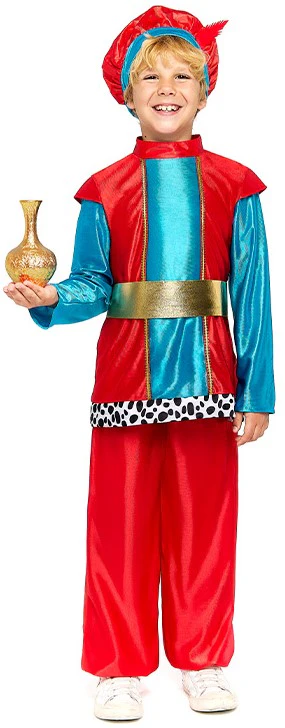 Stai cercando un costume da paggio dei Re Magi per tuo figlio? Con il costume da paggio reale per bambini in rosso e blu avrai il vestito perfetto per travestire tuo figlio nella recita di Natale della scuola come gli aiutanti dei Re Magi Melchiorre, Gaspare e Baldassarre e sarà il bambino più bello della festa natalizia.