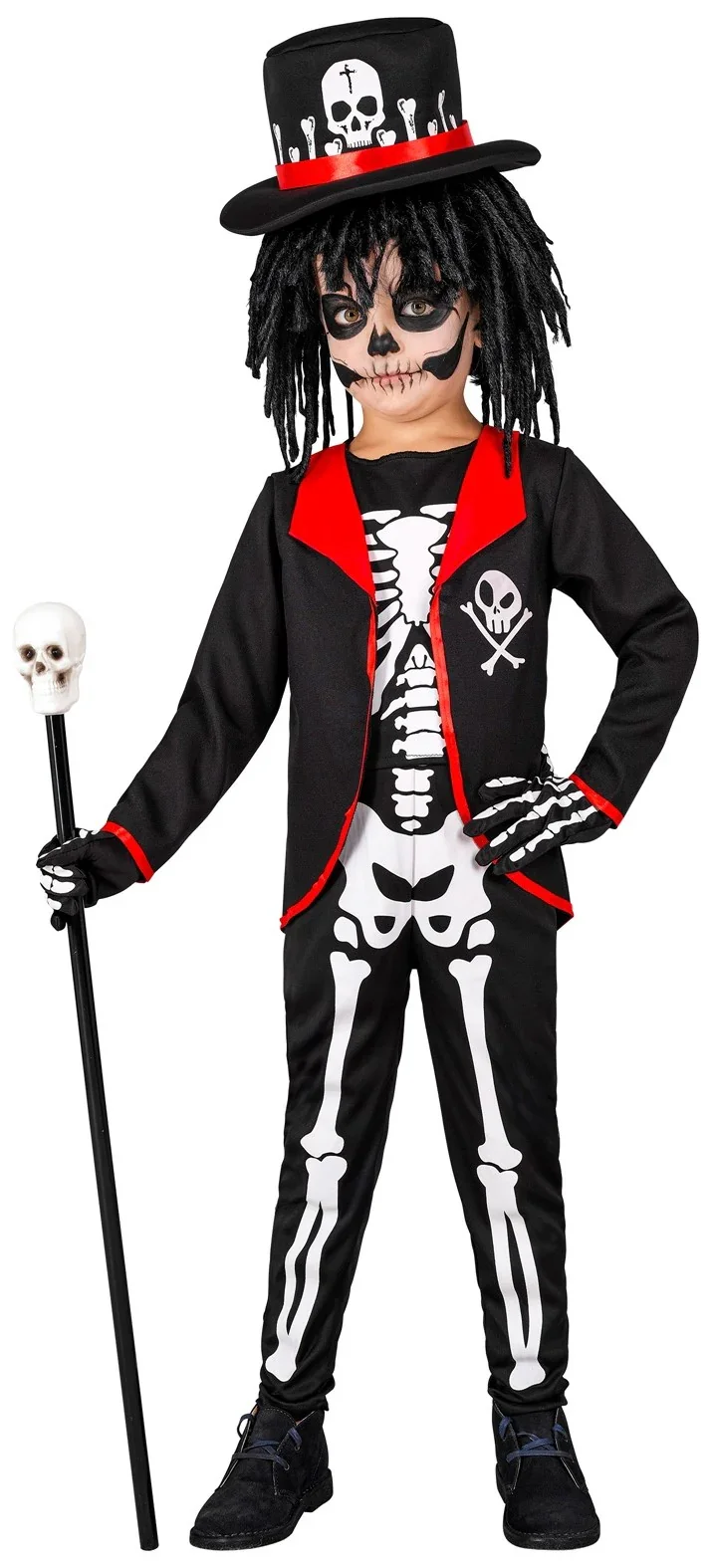 Stai cercando un costume da scheletro voodoo per tuo figlio? Con il costume da scheletro vudù per bambini avrai il vestito perfetto per travestire tuo figlio come uno scheletro elegante e alla moda alla sua festa di Halloween.
