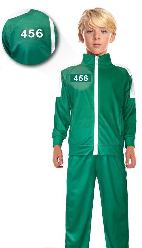 Vuoi travestire tuo figlio come i partecipanti de El Juego del Calamar? Con il tuta verde per bambino o bambina avrai il costume perfetto per travestire i tuoi figli come i partecipanti del macabro gioco della popolare serie coreana El Juego del Calamar e avrai successo alla tua festa in maschera.