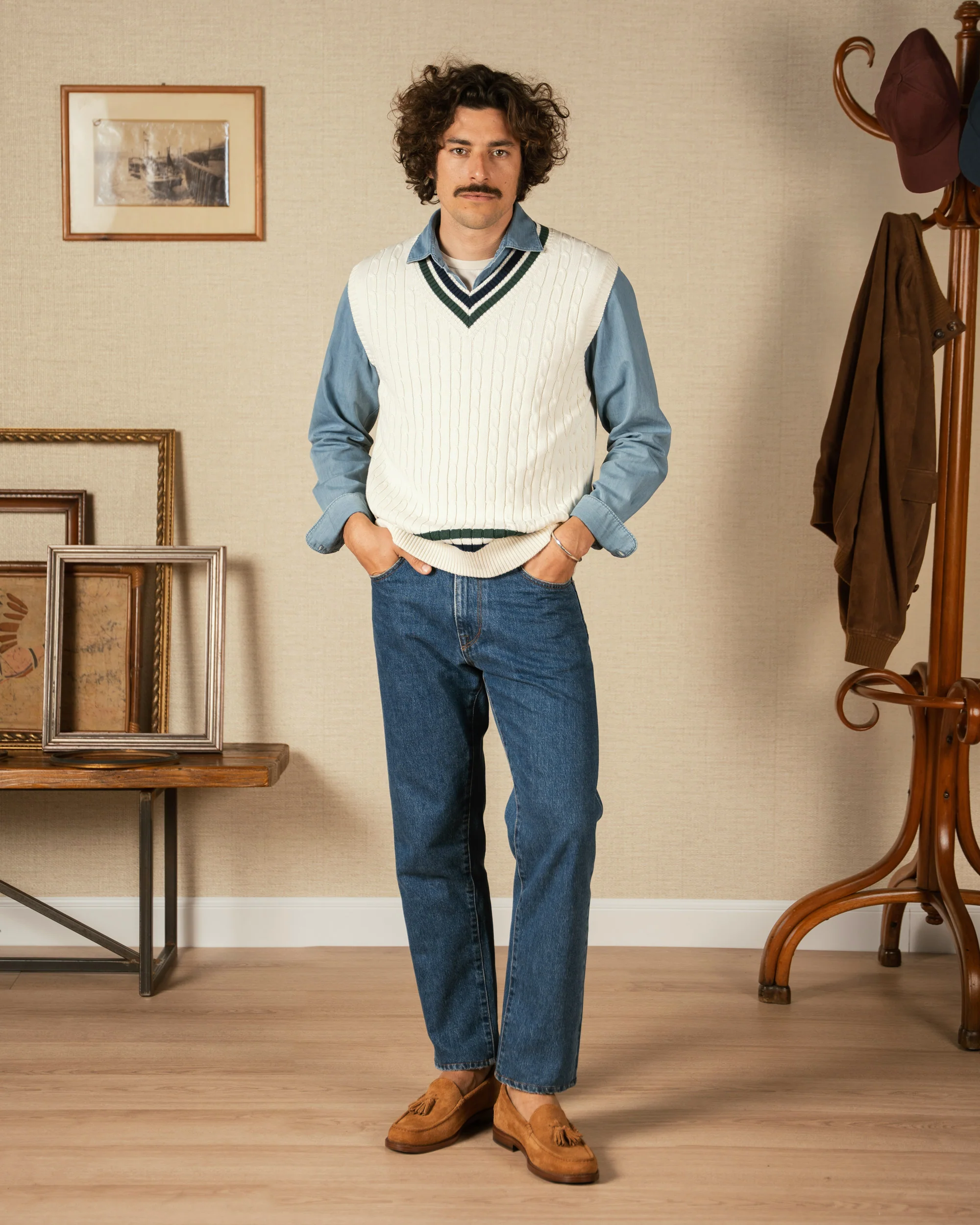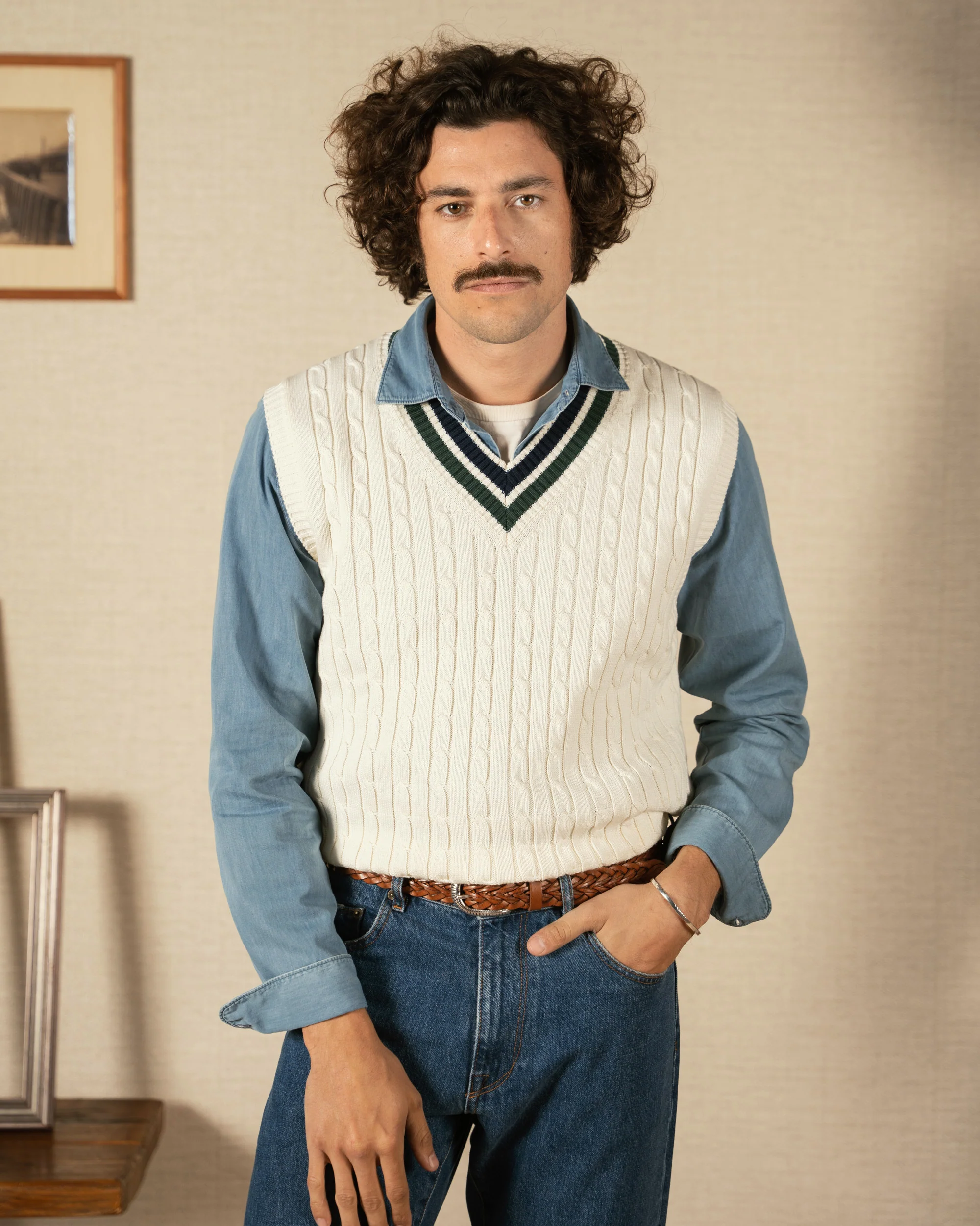 Fondo panna con righe blu e verdi
