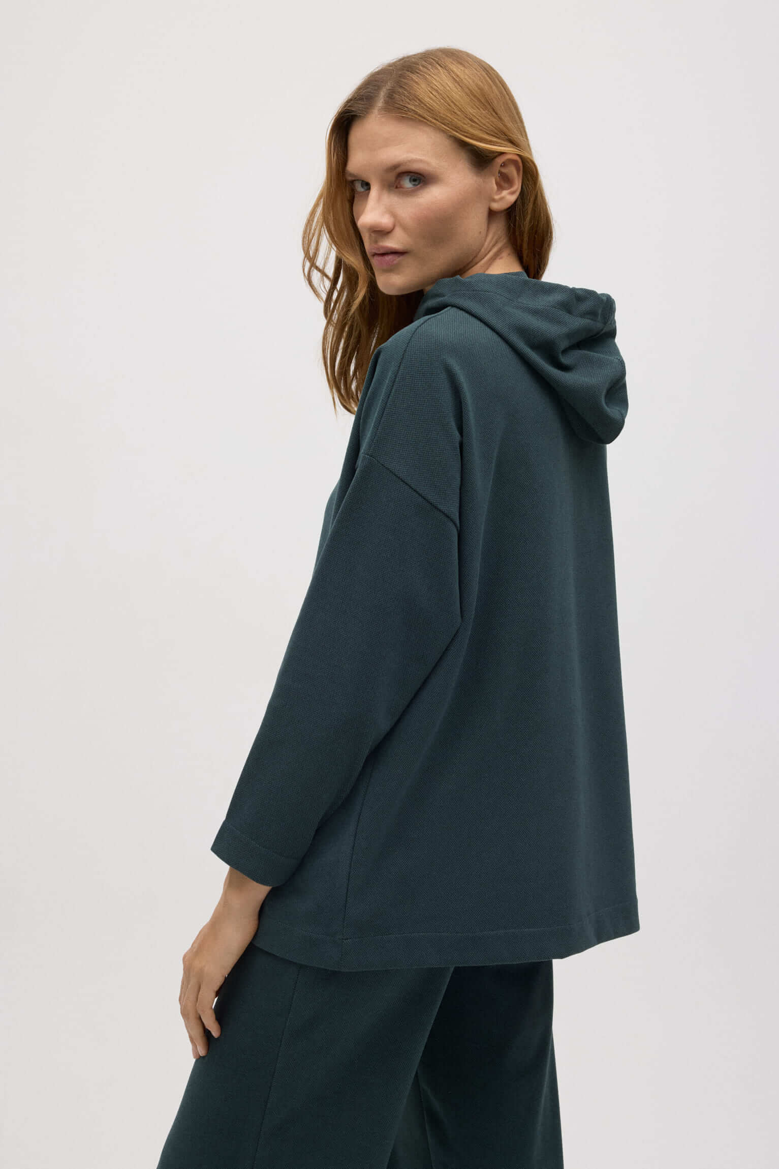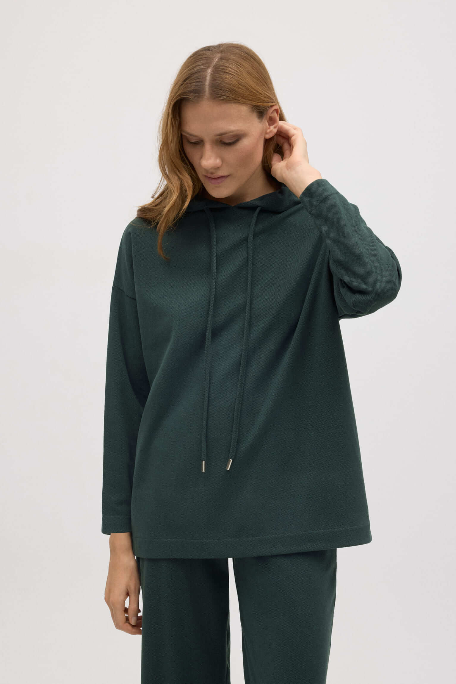 Questa calda felpa con cappuccio regolabile è il complemento perfetto per il tuo look quotidiano. Con una texture jacquard che aggiunge eleganza e morbidezza, è ideale per rilassarsi a casa o per uscire con stile.