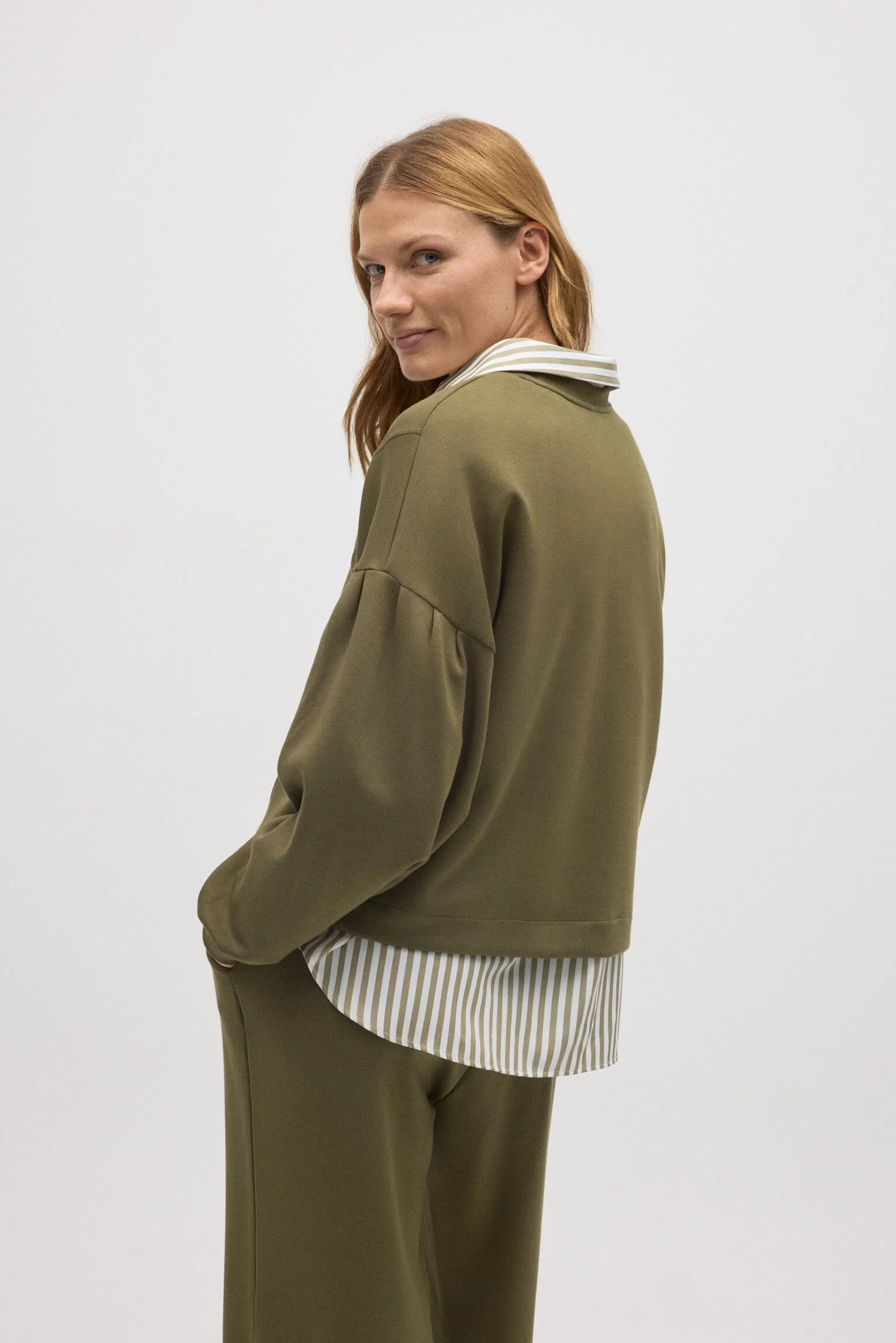 Stile comodo e versatile: perfetto da abbinare a pantaloni o gonne della collezione.