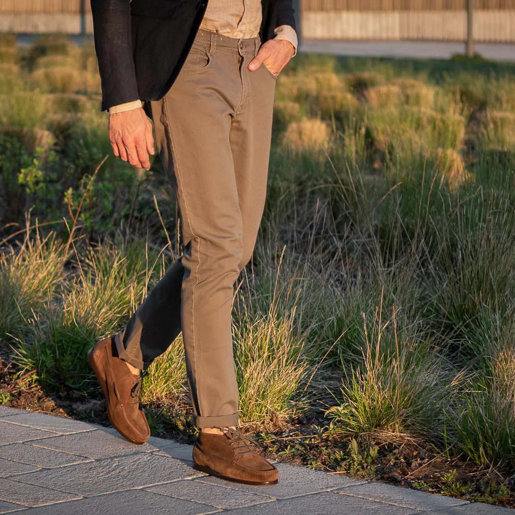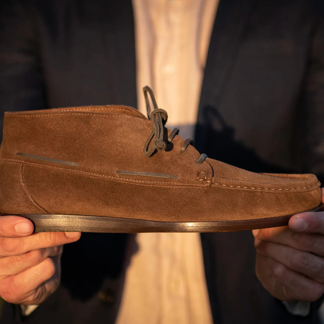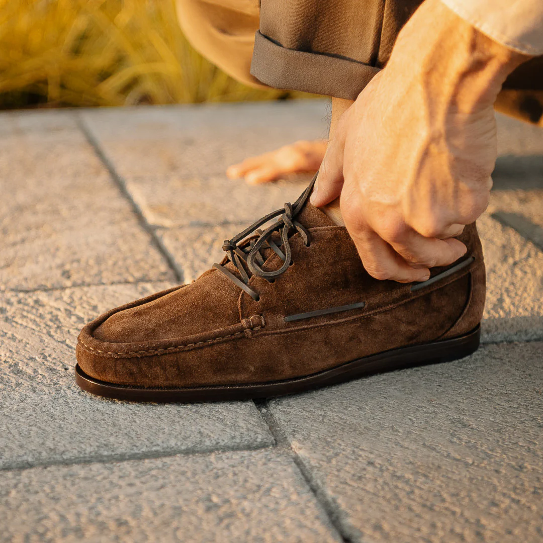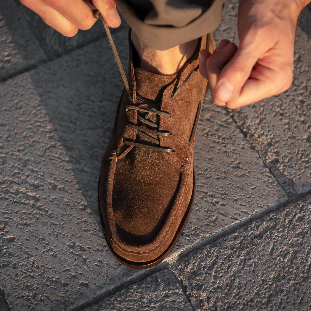 Sono le Indianine che coprono la caviglia, morbide e leggere. Grazie alla pelle di vitello scamosciata e alla sua suola in cuoio, è la scarpa testa di moro per l’uomo che ama vestirsi casual, al lavoro e fuori.