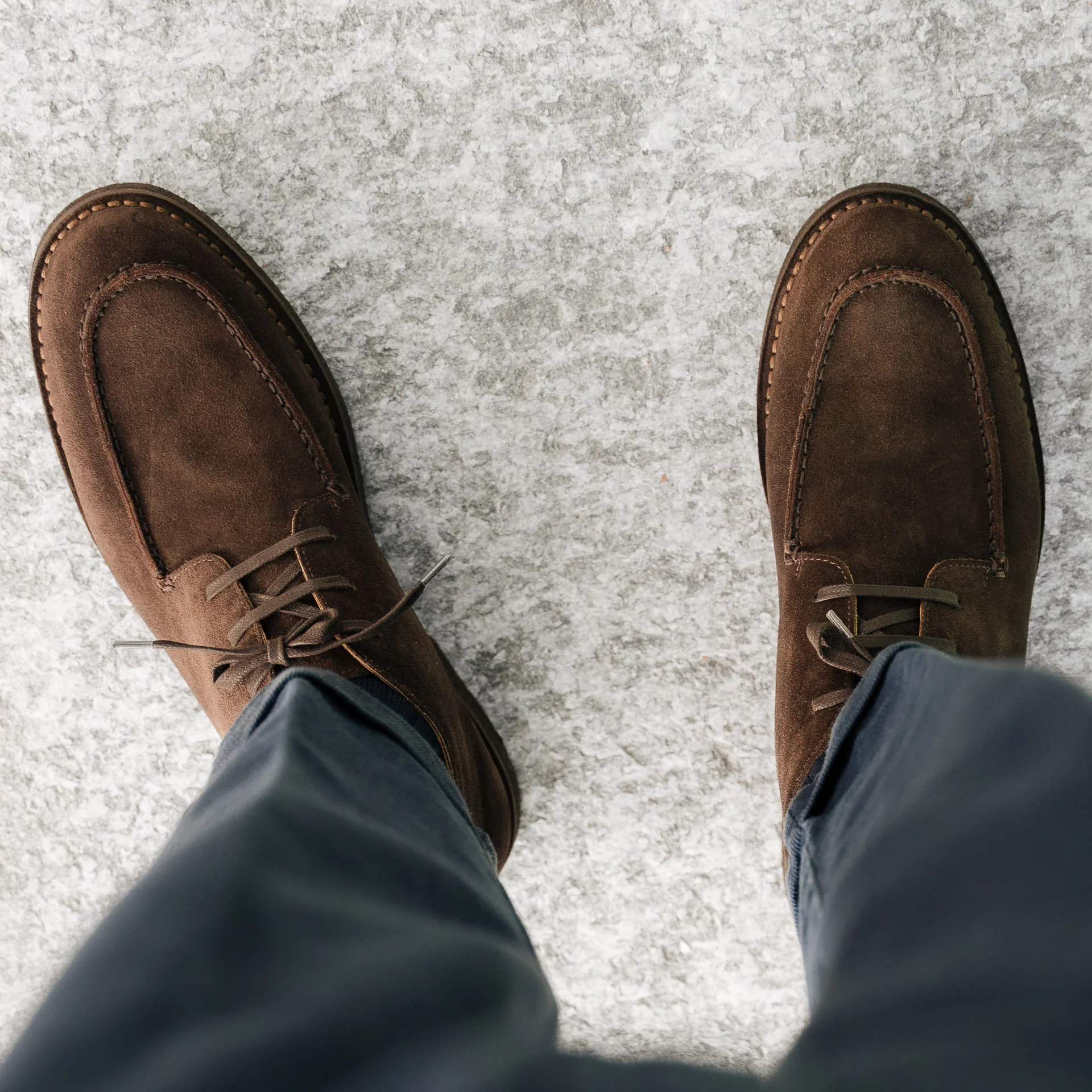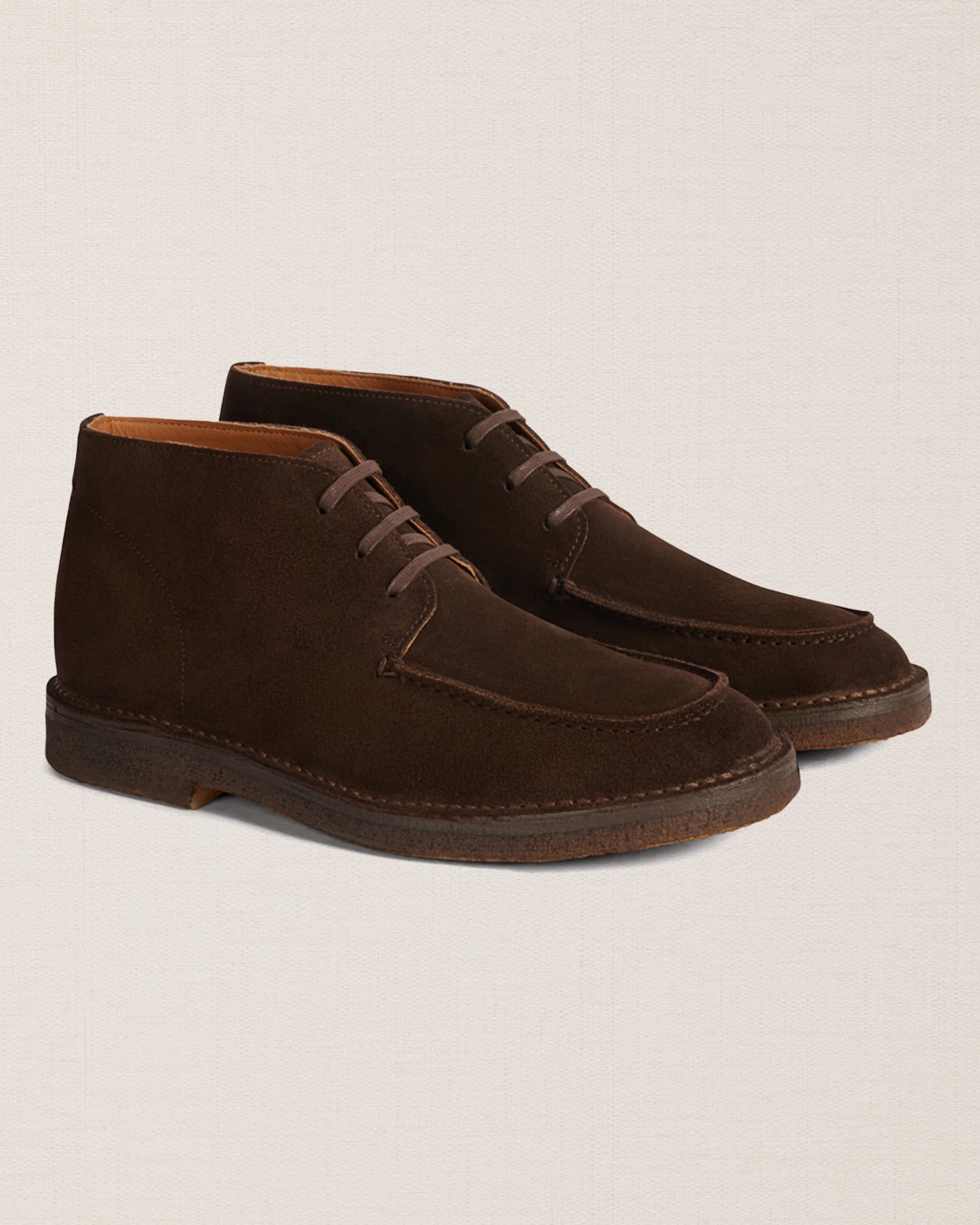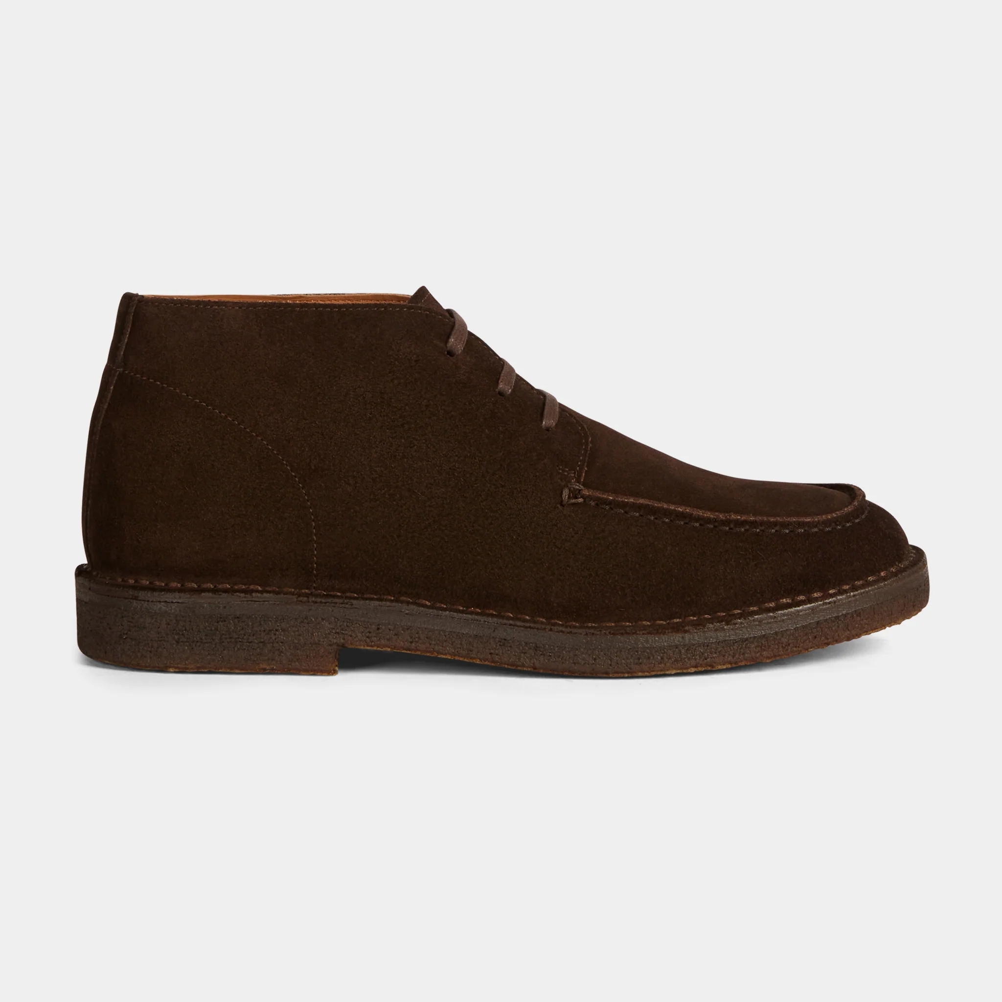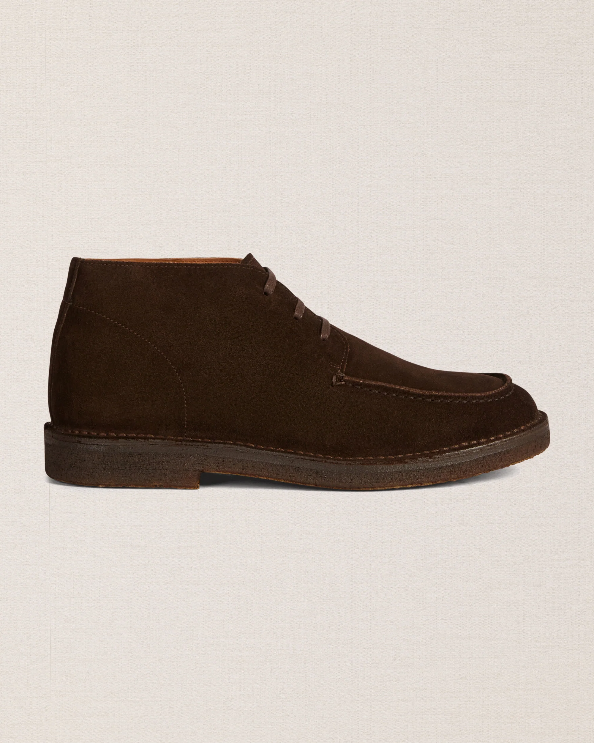 Le desert boots con la punta “a vaschetta”, in pelle scamosciata testa di moro e suola in gomma para. Un tocco vintage ai tuoi look invernali e di mezza stagione.