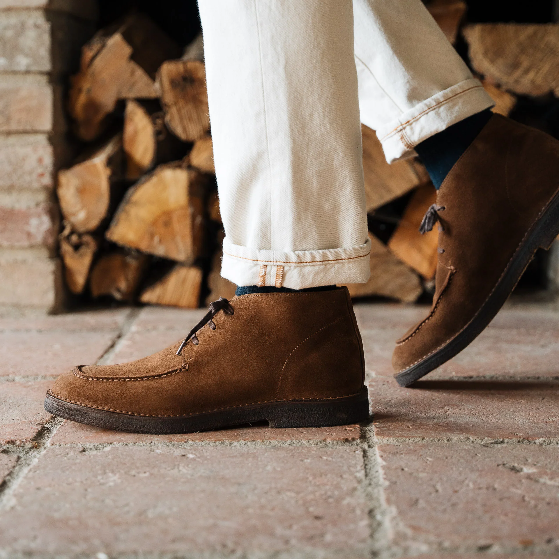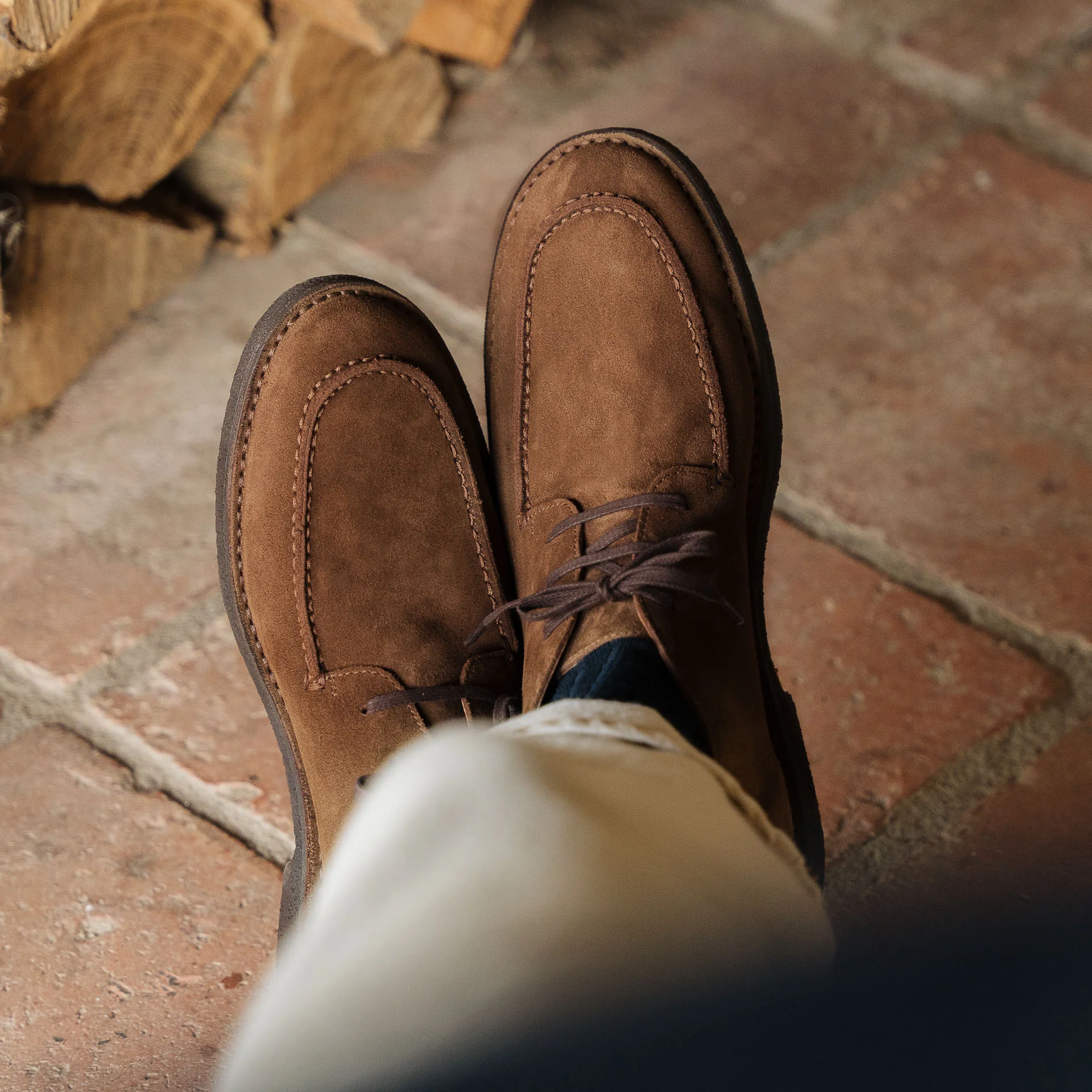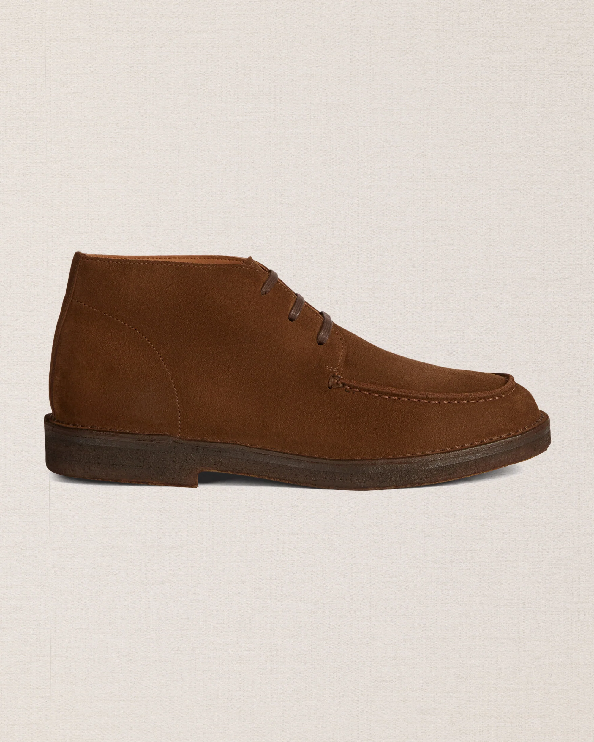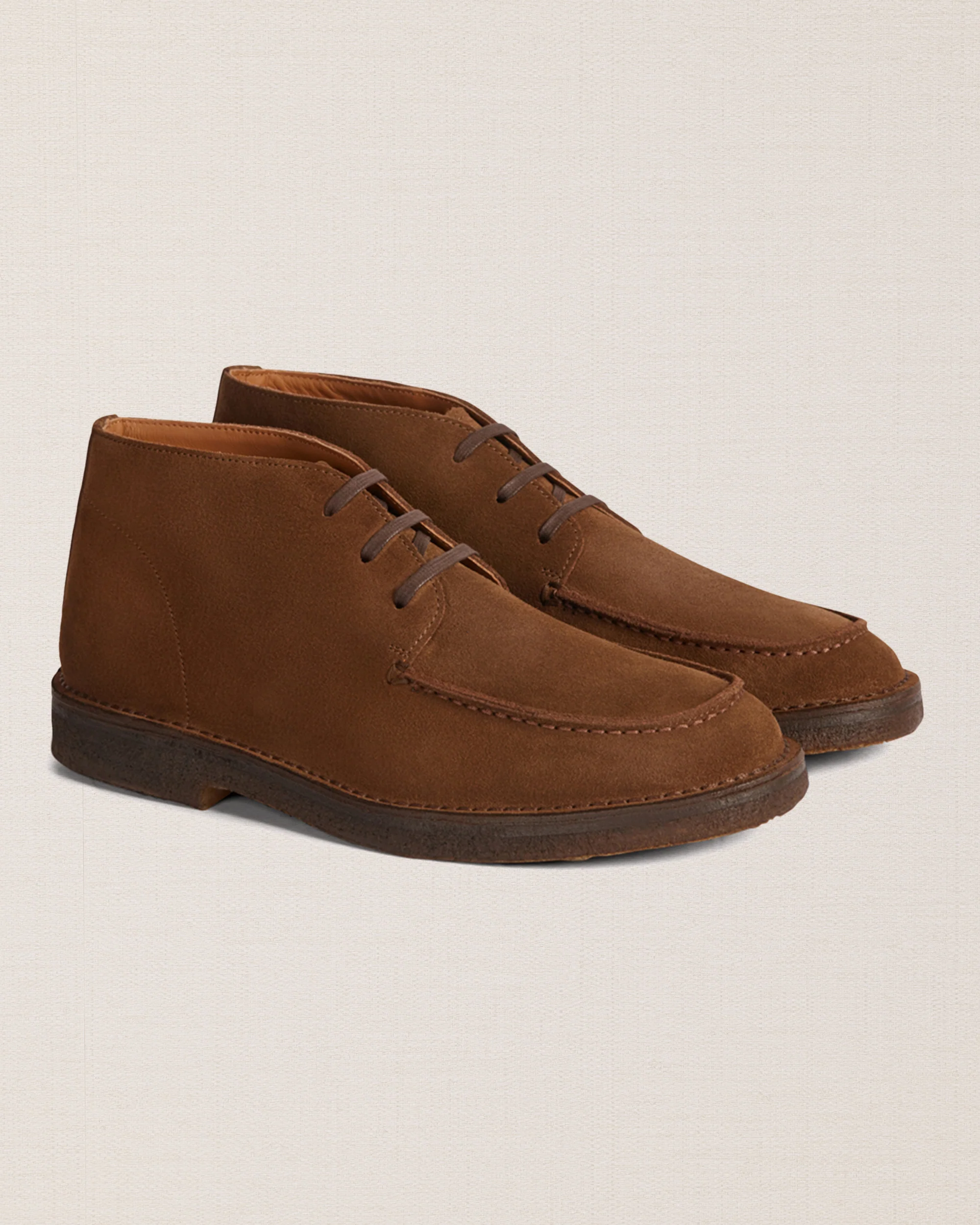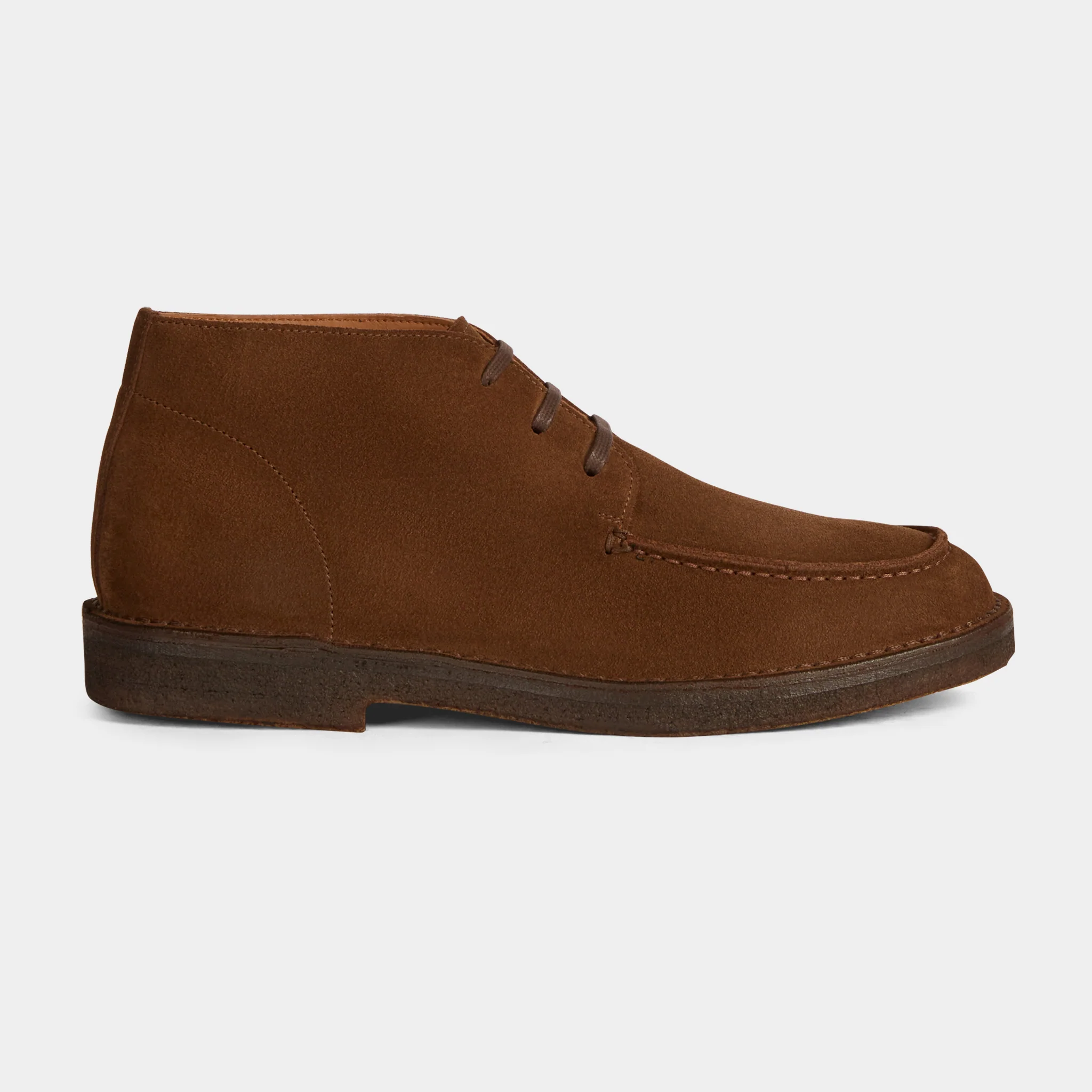 Le desert boots con la punta “a vaschetta”, in pelle scamosciata marrone e suola in gomma para. Un tocco vintage ai tuoi look invernali e di mezza stagione.