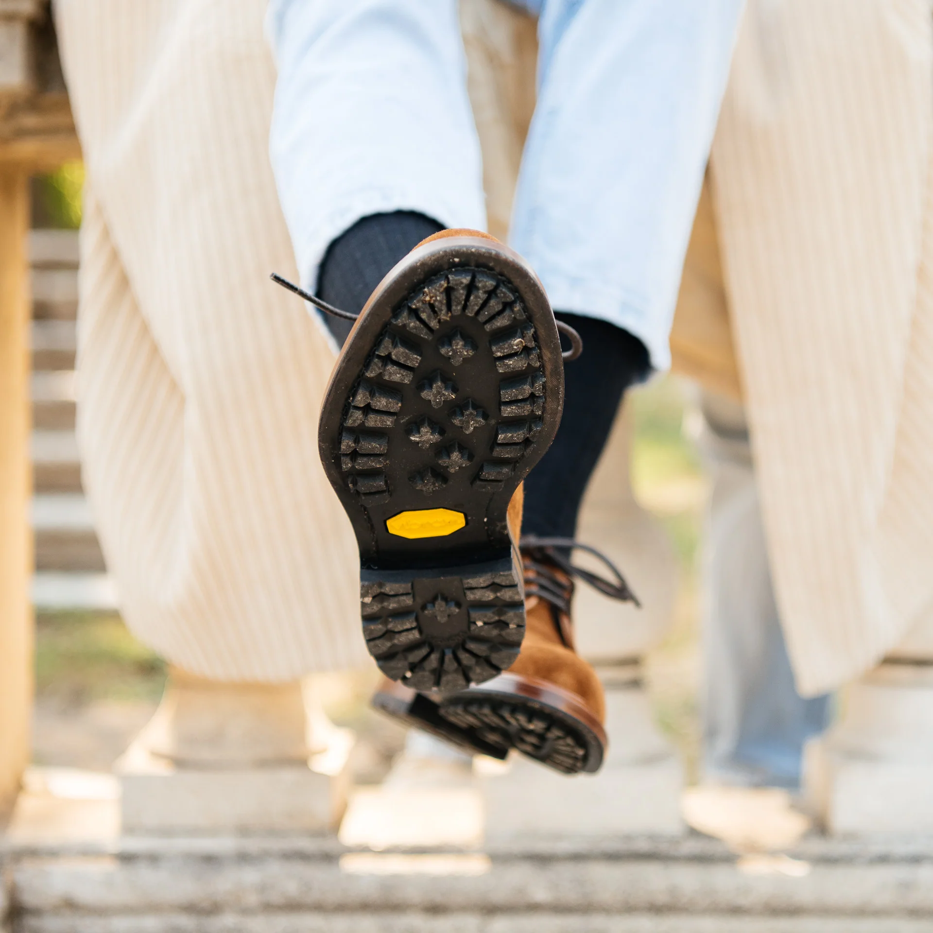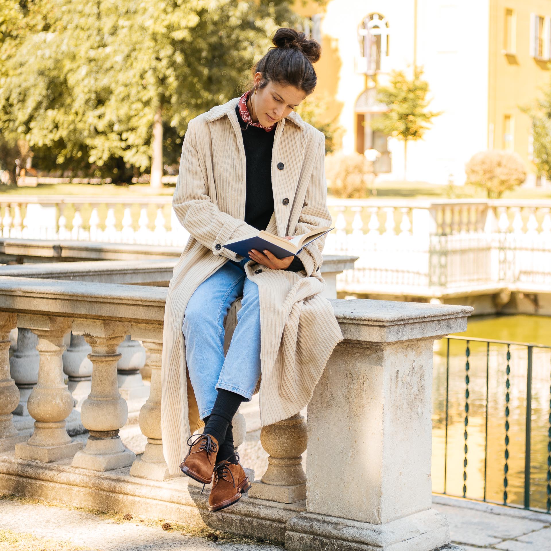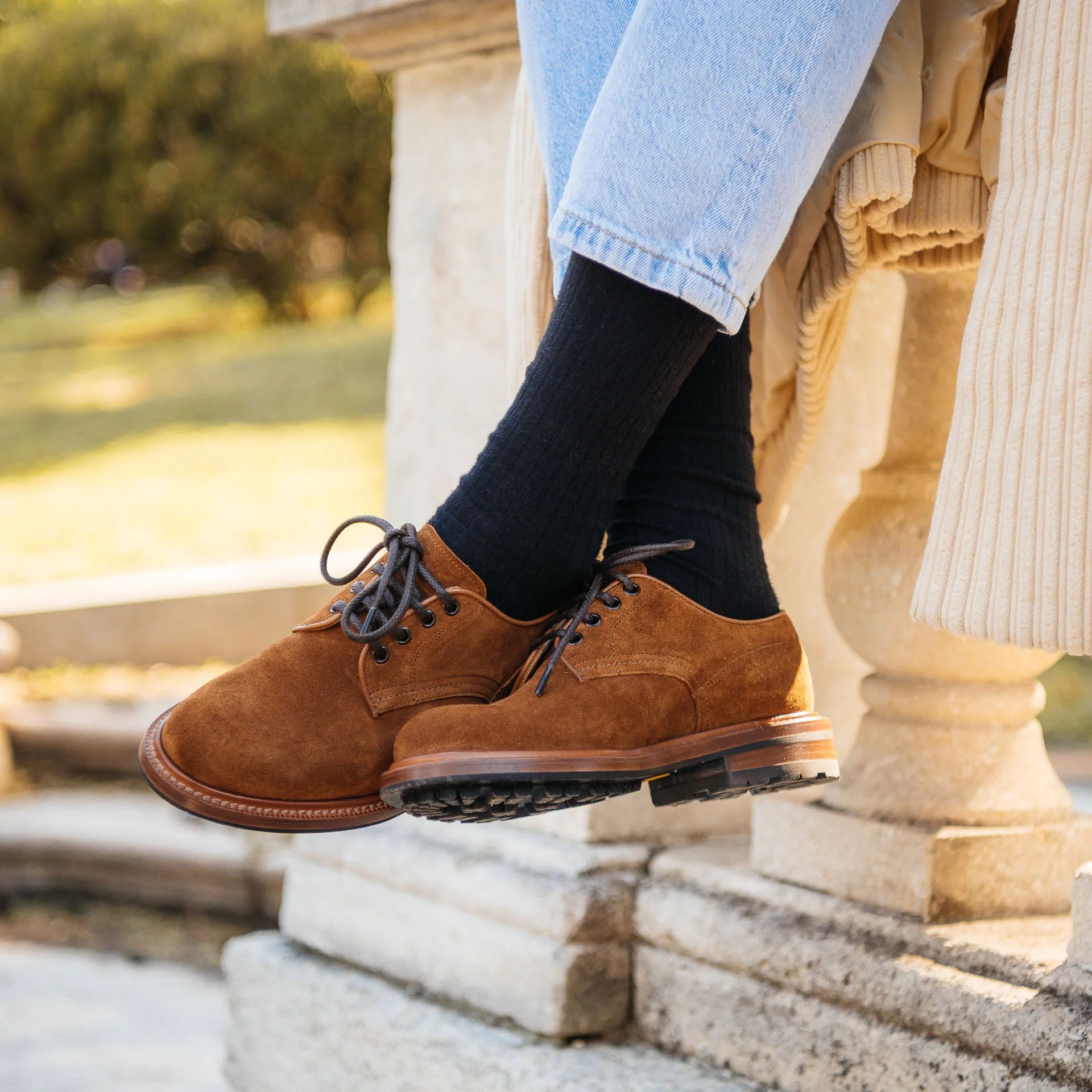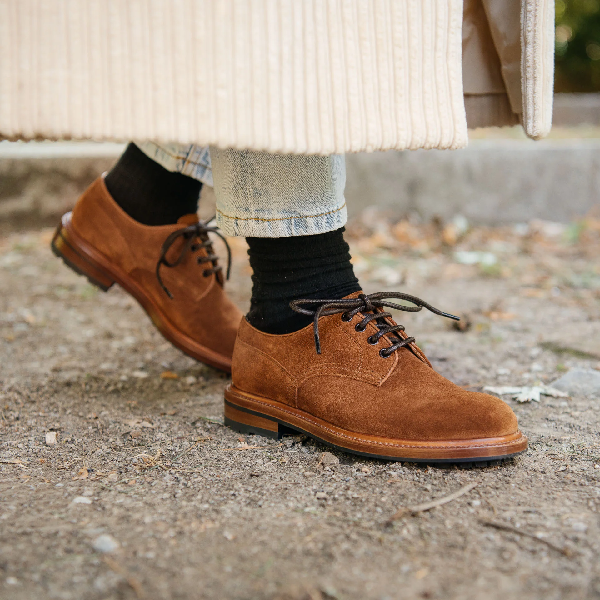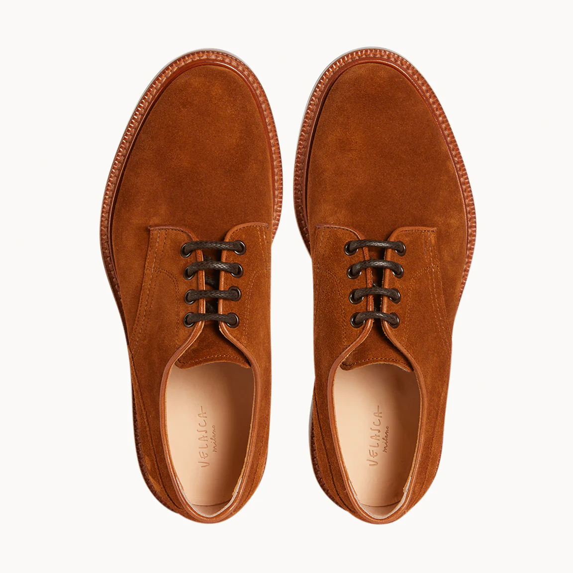 La derby in pelle scamosciata, d’ispirazione country; con la suola in gomma Vibram Carrarmato sei protetta sempre, soprattutto dalla pioggia. Fatta a Montegranaro (FM).
