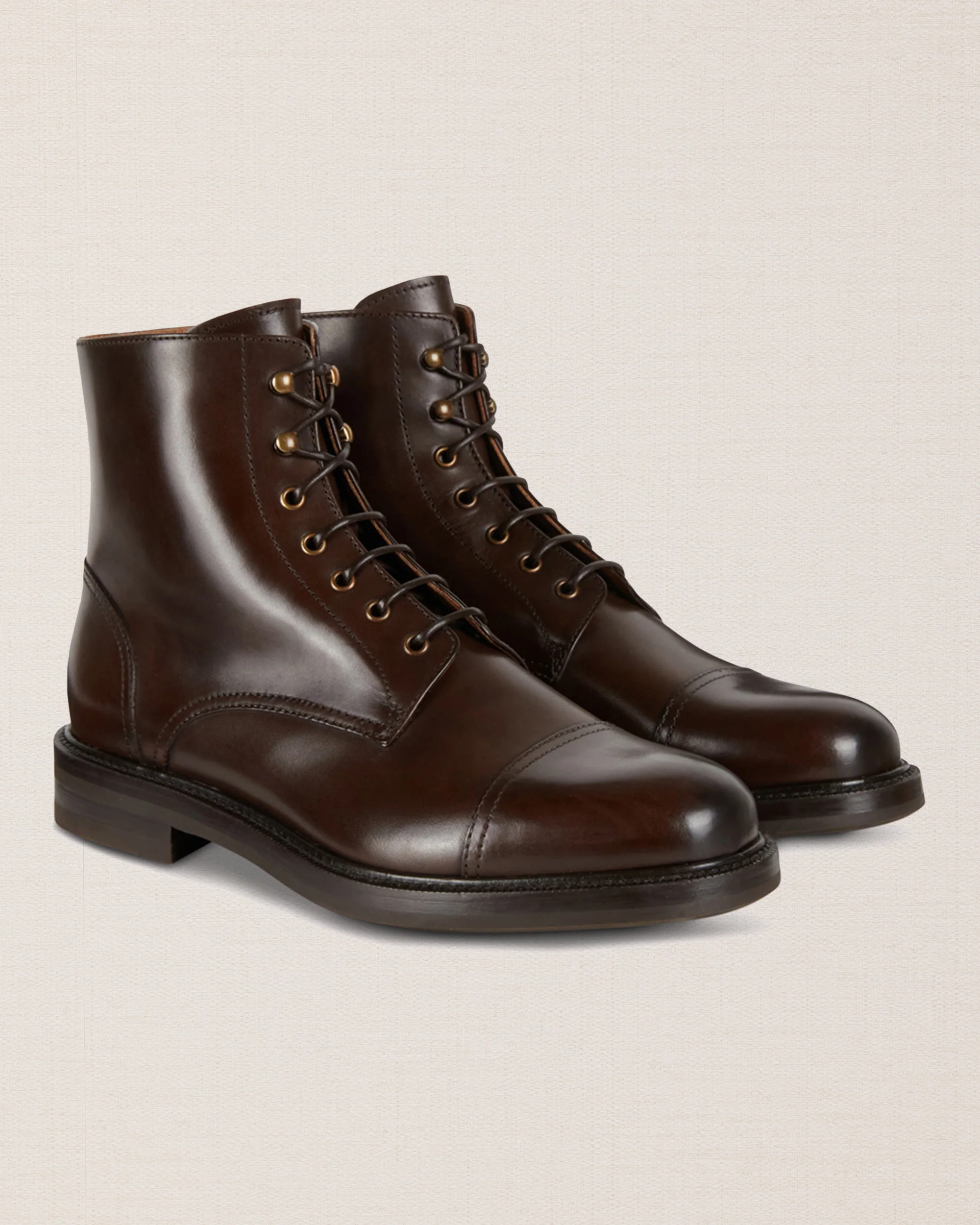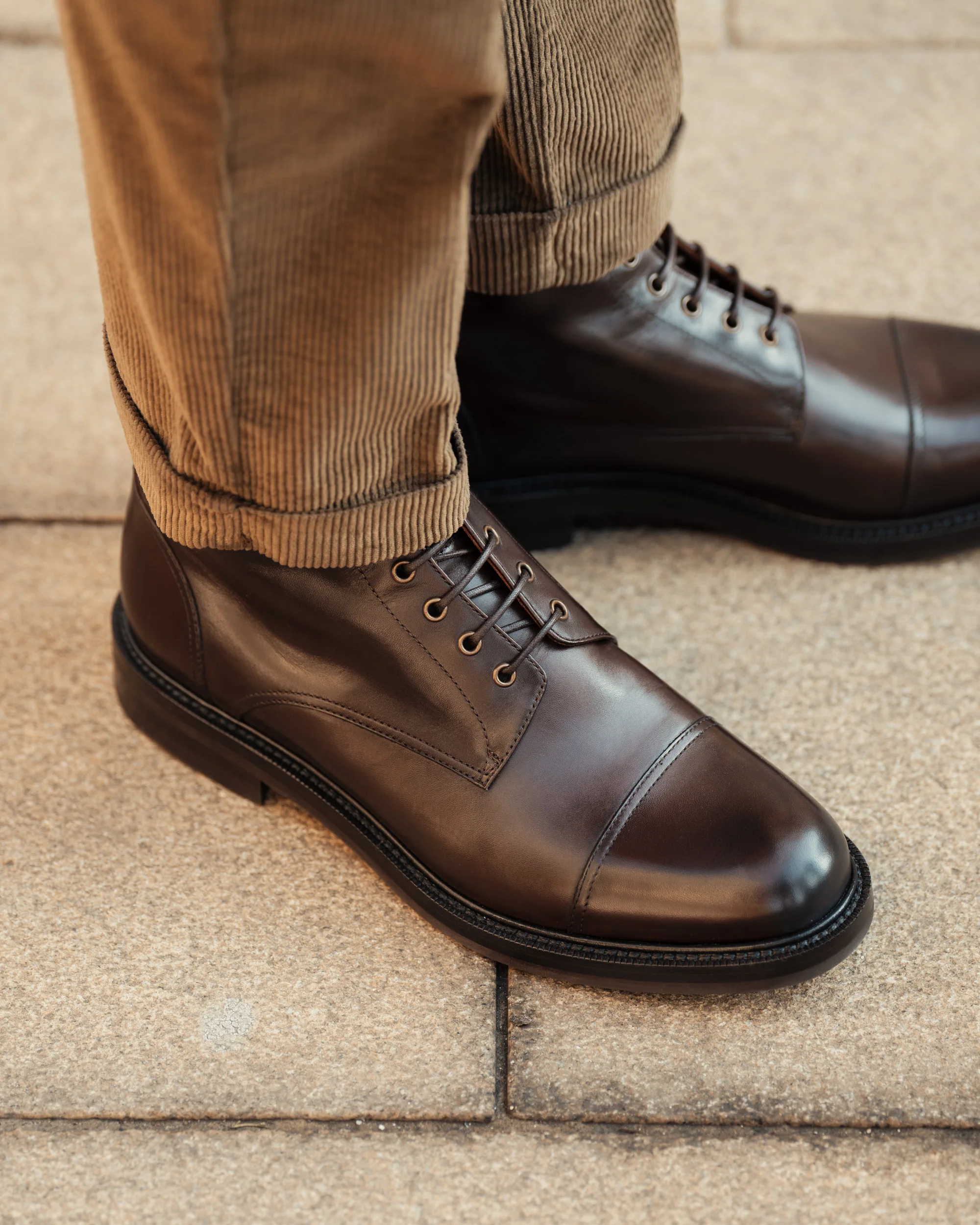 È lo Stivaletto allacciato interamente marrone scuro per l’uomo di carattere. Lo indossa il biker ricercato che ama le moto custom ma anche quello dell’aperitivo informale nelle giornate d’autunno/inverno. Grazie alla pelle di vitello pieno fiore e alla suola made in Italy in gomma Vibram, è lo scarponcino marrone testa di moro alla caviglia che sta molto bene su un pantalone stretto nero così come su dei jeans strutturati blu scuro.