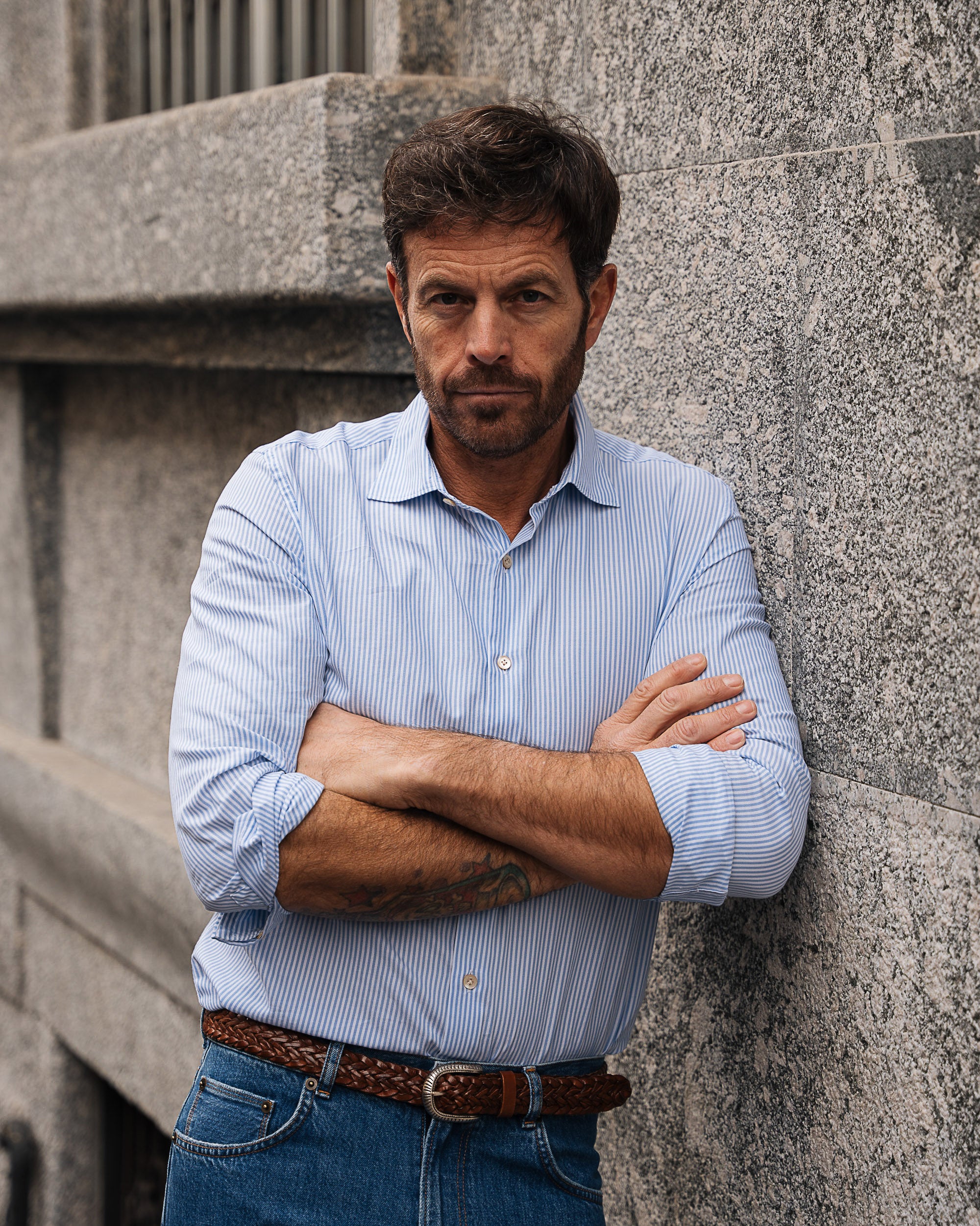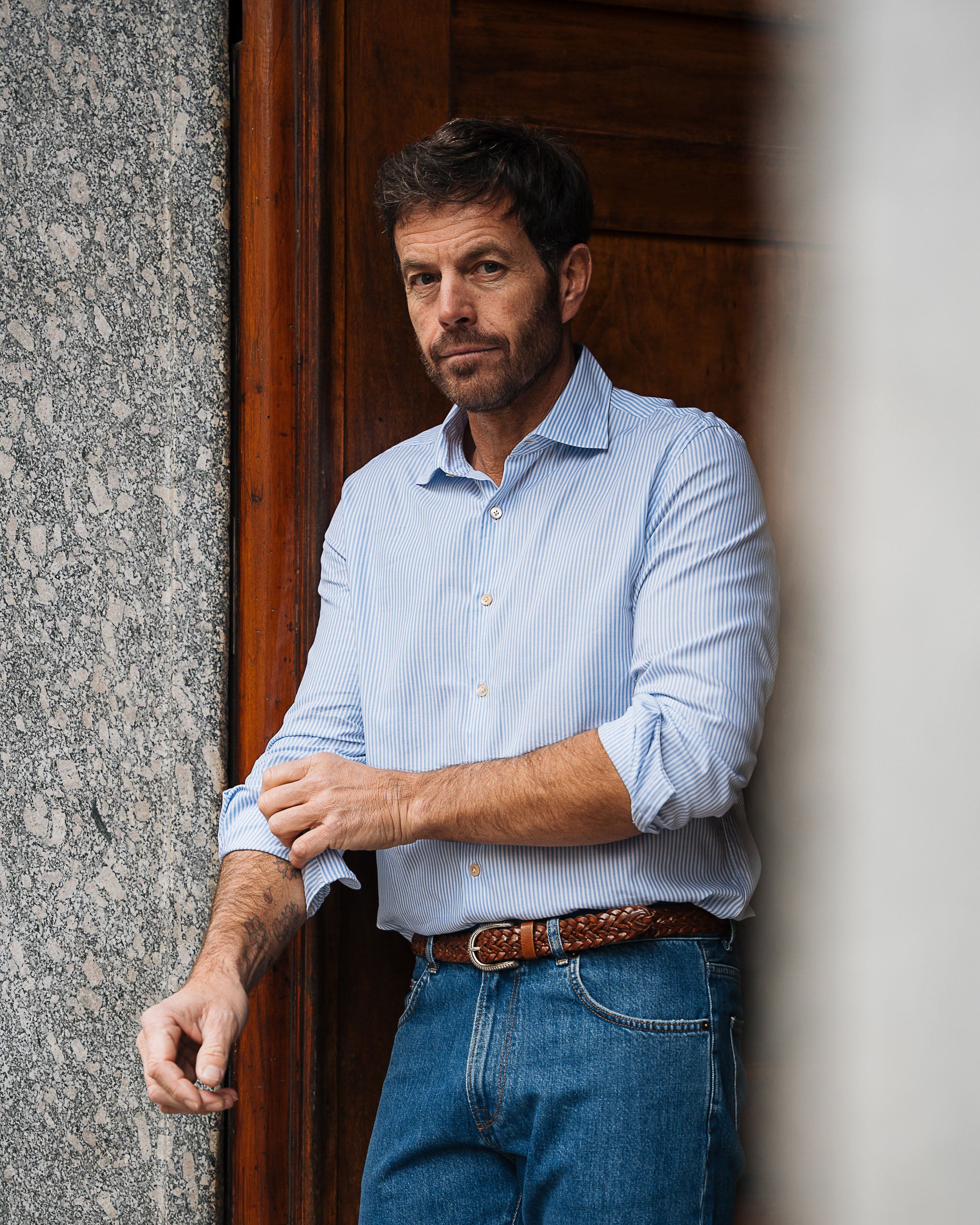 A righe bianche e azzurre