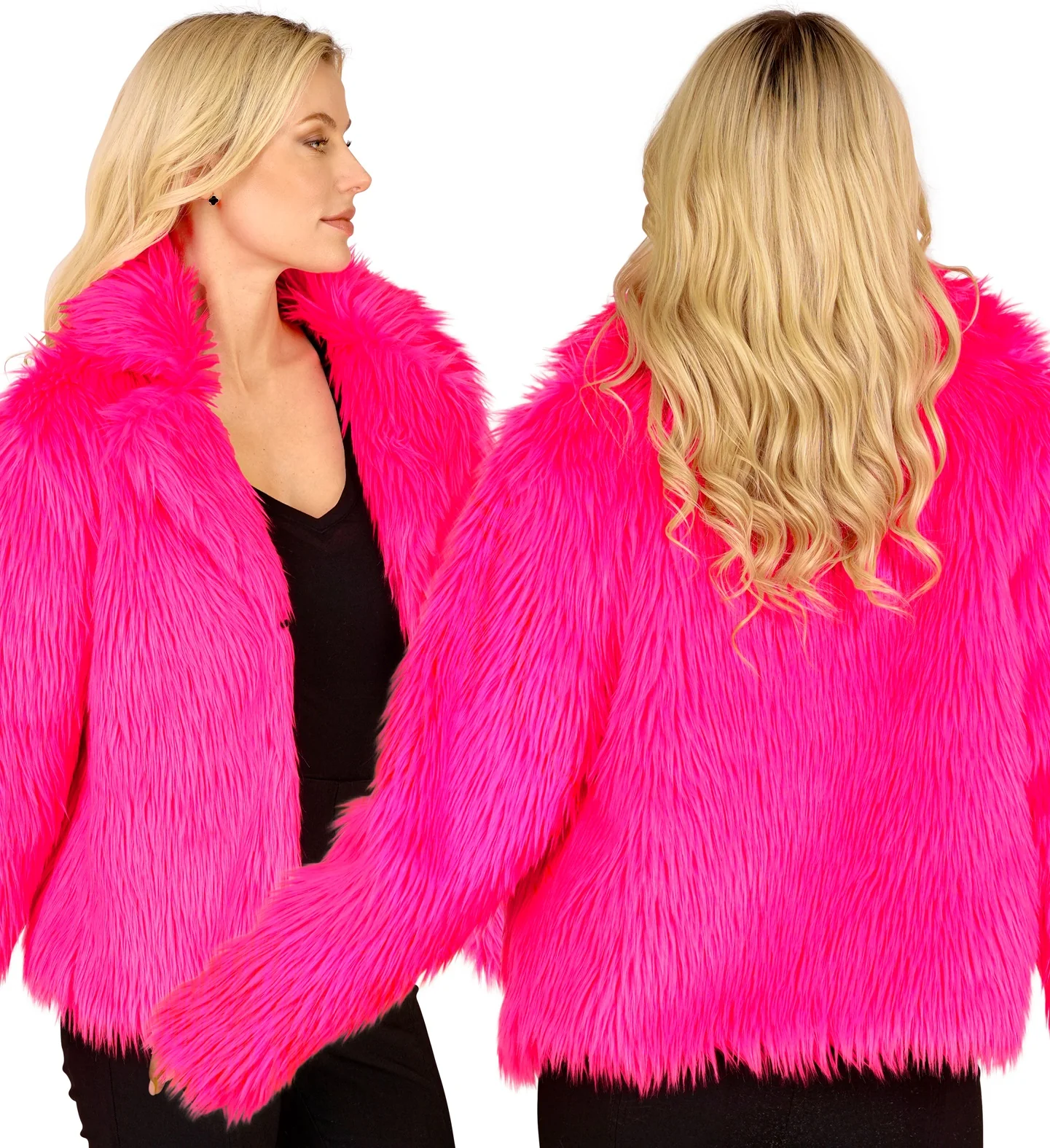 Stai cercando una giacca di pelliccia rosa fucsia per la tua festa? Con la giacca rosa neon di pelliccia per donna avrai l’accessorio perfetto per una grande varietà di costumi come rapper, disco, Barbie, anni ’70 e molti altri.
