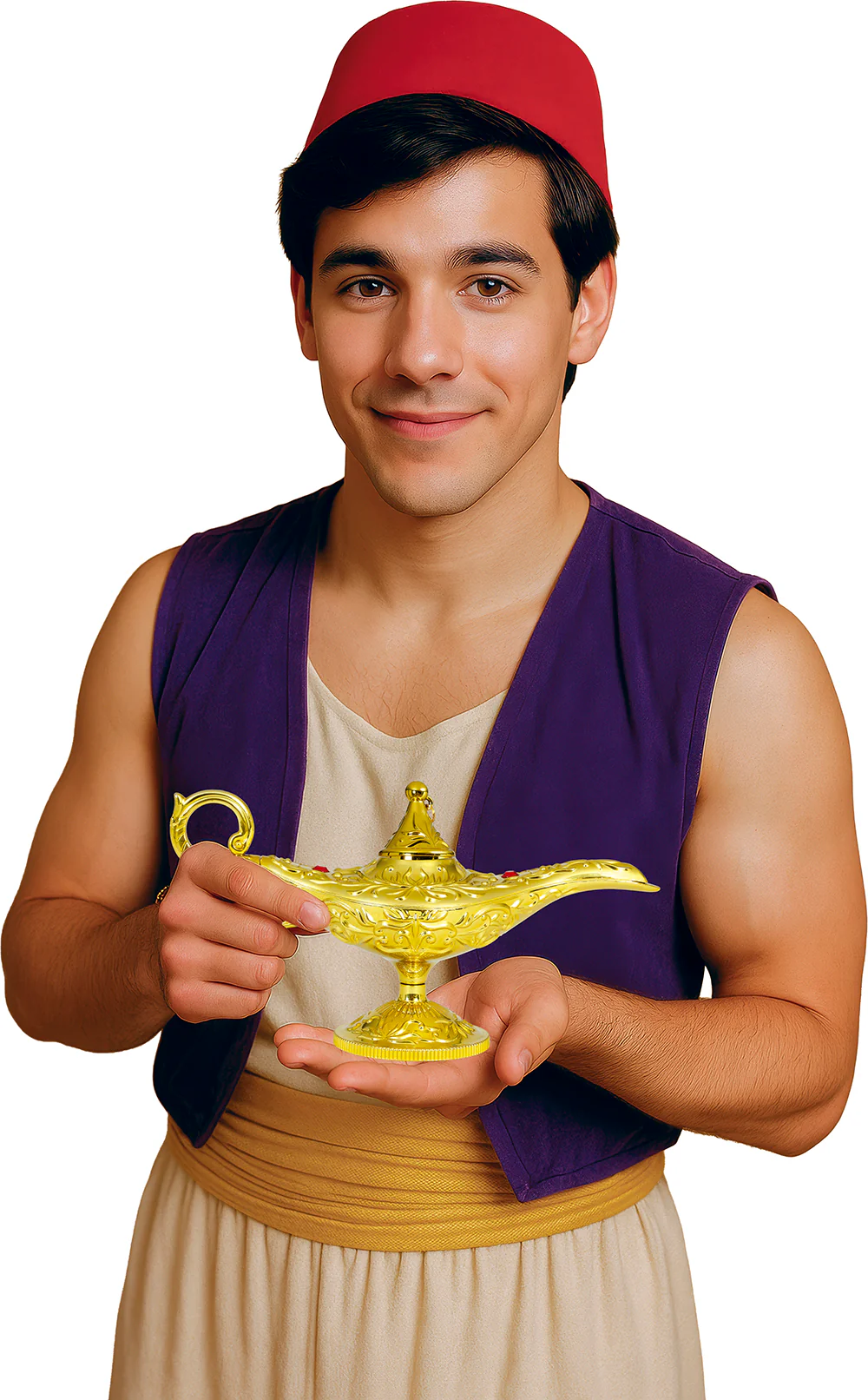 Stai cercando una lampada del genio per il tuo costume di Aladdin? Con la lampada magica di Aladdin in colore dorato avrai un accessorio realistico per travestirti come questo personaggio del film “Aladdin” di Disney,