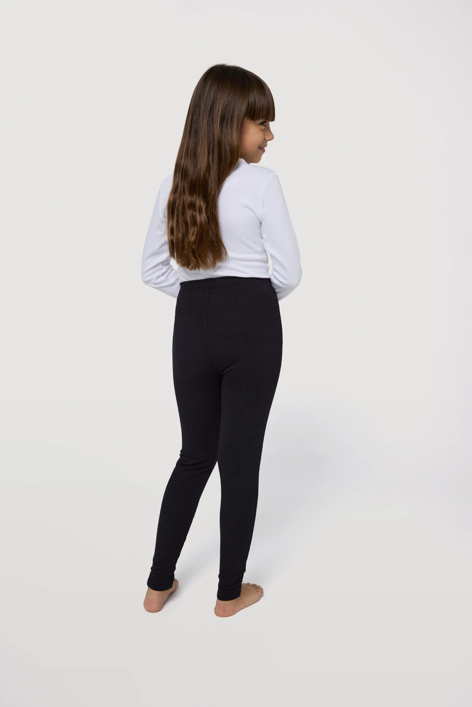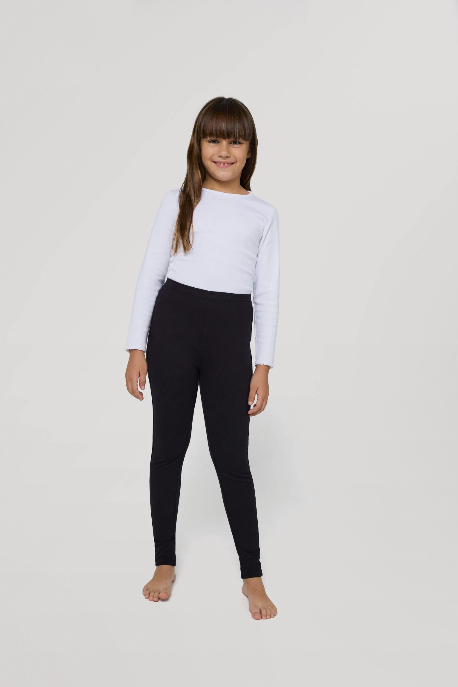 Leggings basic per bambina molto caldi in cotone con interno in peluche. Realizzato con cotone naturale. Perfetto per l’inverno. Colore nero.