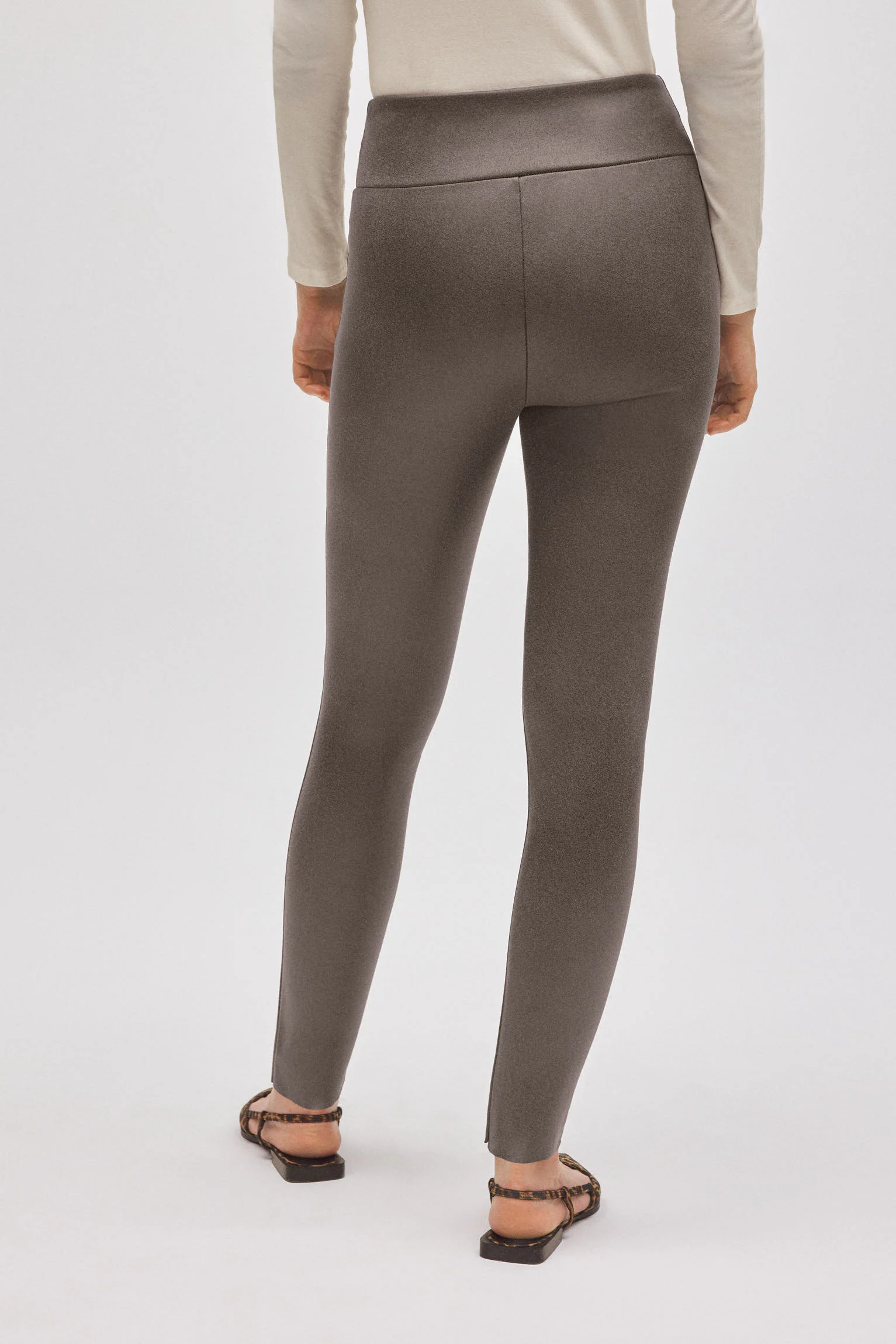 Leggings effetto metallizzato con ampia fascia elastica e vita alta. Un capo dalla delicata lucentezza che unisce moda e comfort.