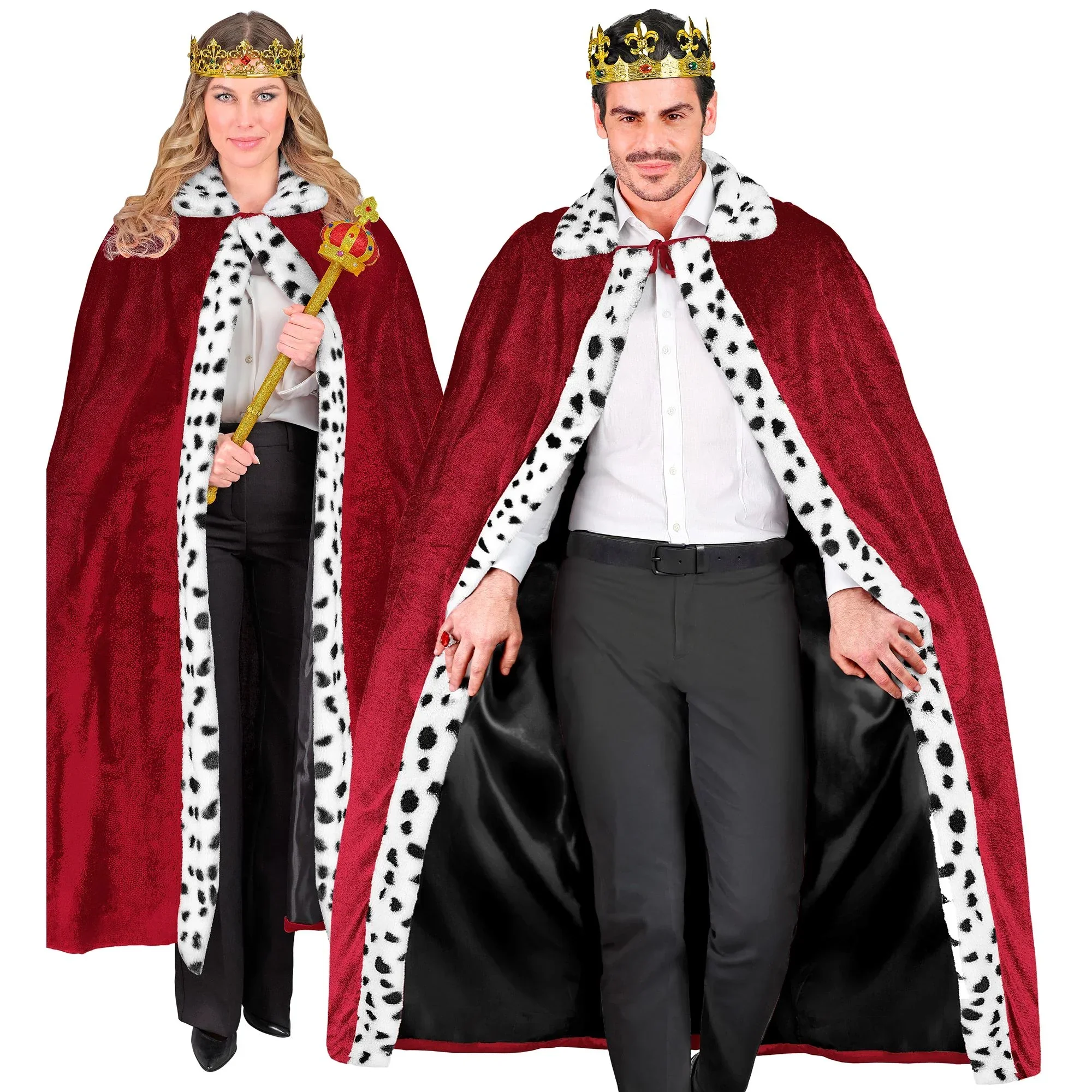 Stai cercando un mantello per il costume da re o regina medievale? Con il mantello per uomo o donna in colore bordeaux con bordo e collo con stampa dalmata avrai l’accessorio perfetto per una grande varietà di costumi come imperatore o re medievale.