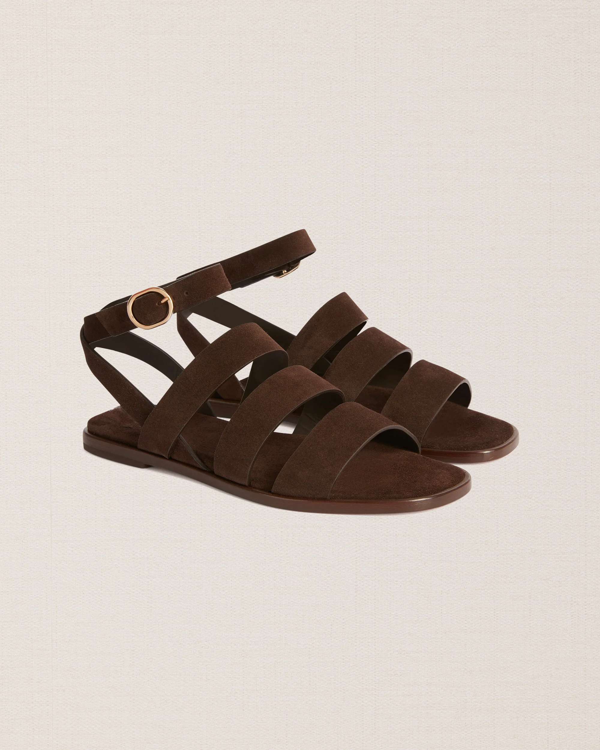 Il nostro sandalo “alla romana”: le linee geometriche accompagnano il piede fino alla caviglia. Le fasce sono prive di cuciture, così non rischi che ti lascino segni.