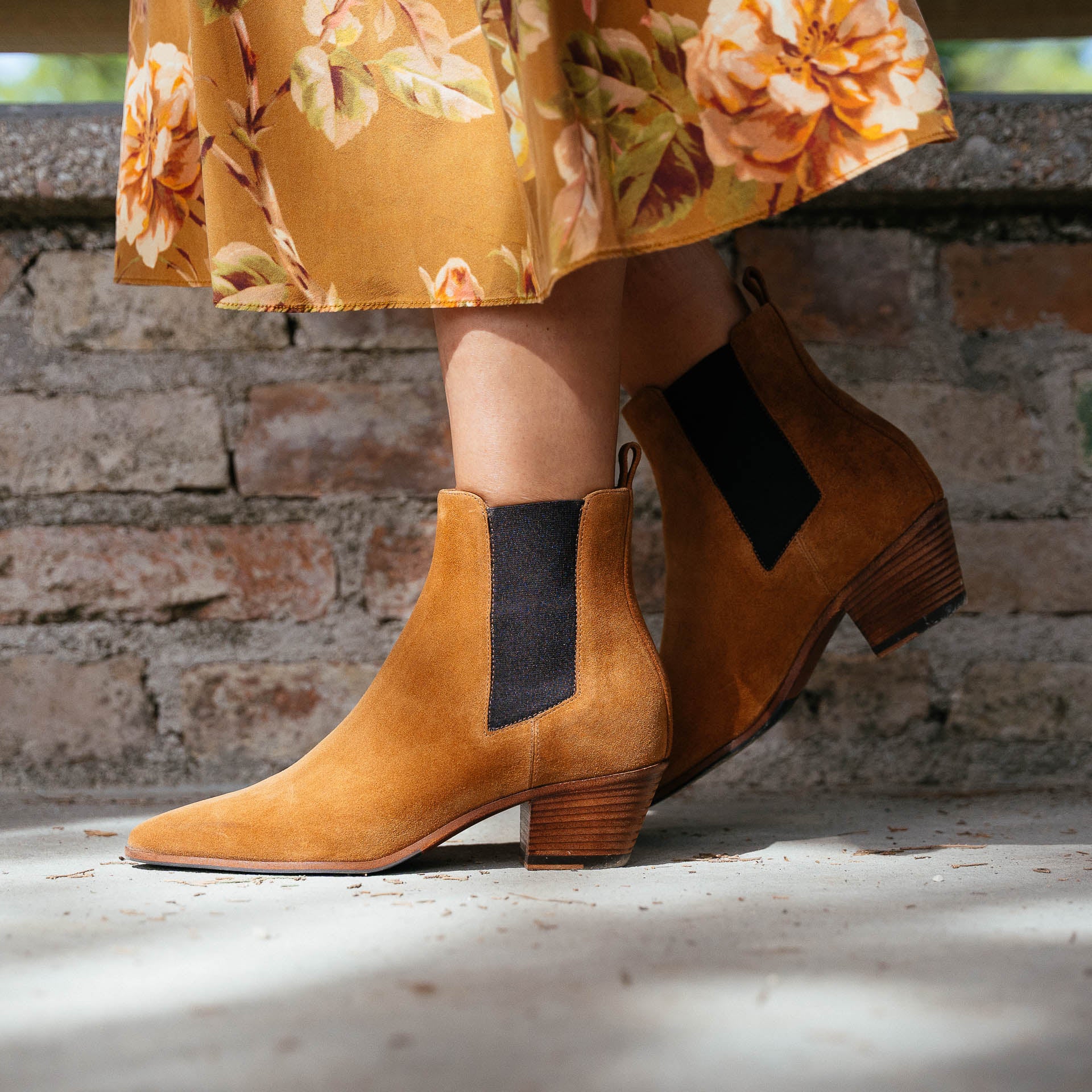 Il nostro stivaletto dal design liscio, che termina leggermente a punta. Strizza l’occhio allo stile country. Il tacco? È basso, ma dà carattere. Fatto a Fermo (FM).