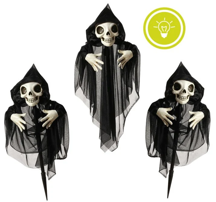 Vuoi decorare il tuo giardino nel modo più terrificante per Halloween? Con il paletto scheletro con tunica nera di 60 cm e luci bianche negli occhi avrai l’accessorio perfetto per decorare il tuo giardino come se la Morte stesse vagando e trionferai alla festa di Halloween.