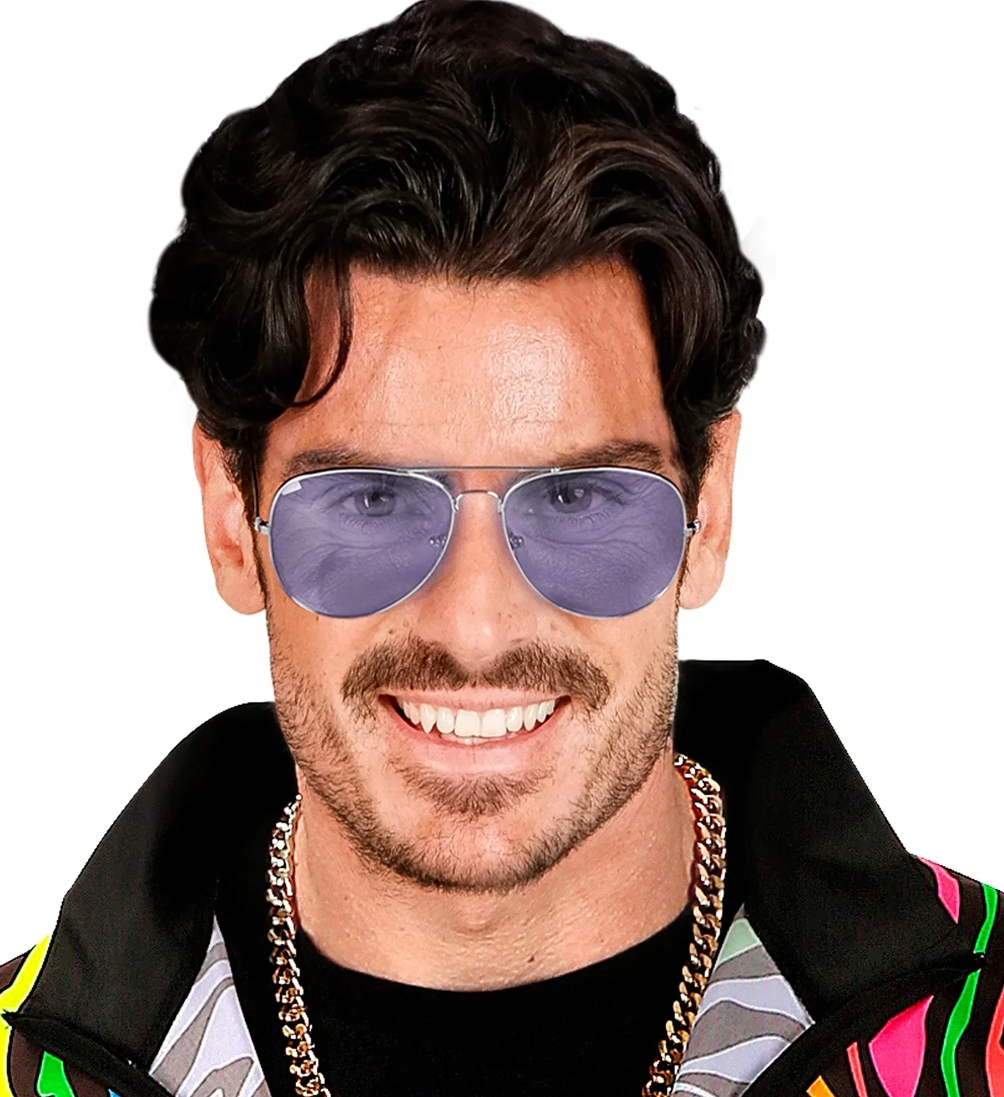 Stai cercando degli occhiali modello stile aviator per il tuo costume? Con gli occhiali da aviatore con montatura metallica argentata e lenti blu avrai il complemento perfetto per una grande varietà di costumi degli anni ’80 e ’90.