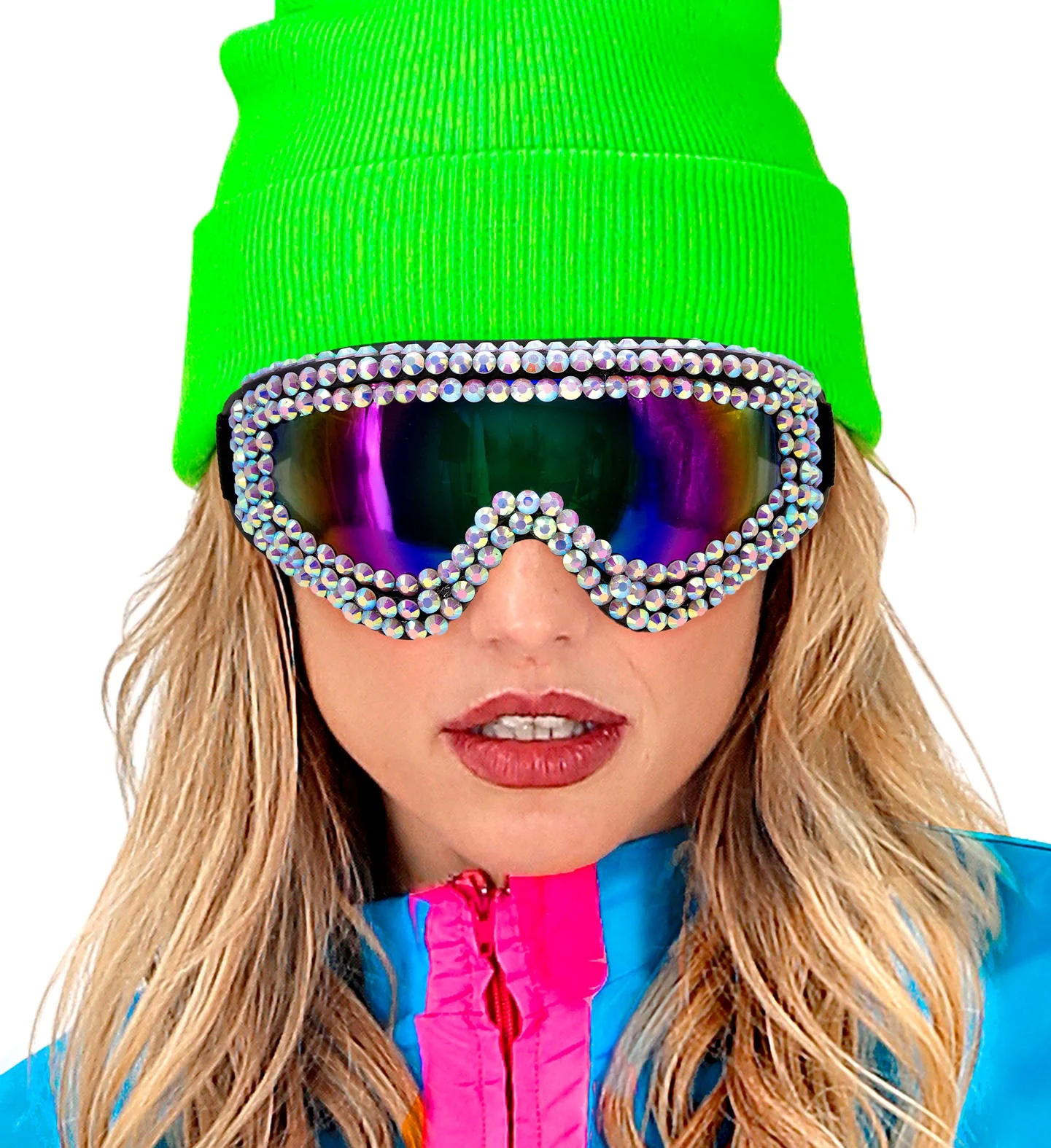 Stai cercando degli occhiali appariscenti per il tuo costume? Con gli occhiali da sci o snowboard decorati con strass avrai l’accessorio più originale per travestirti alla tua festa in maschera.