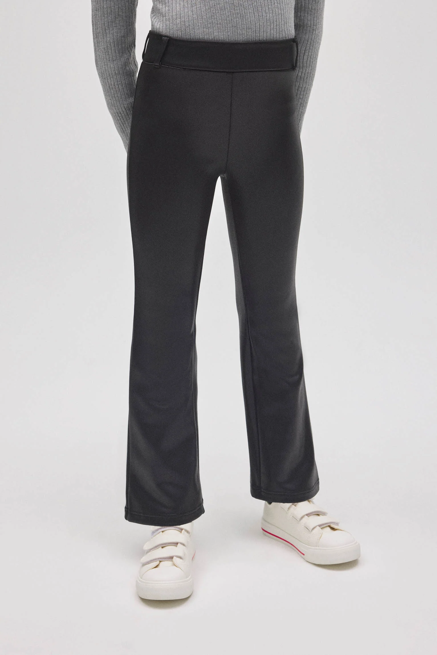 Pantaloni termici a vita alta svasati con effetto pelle e finitura lucida.