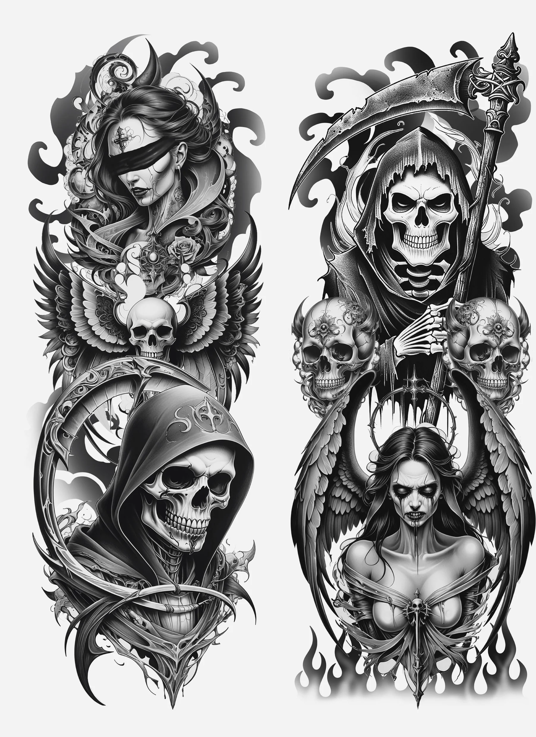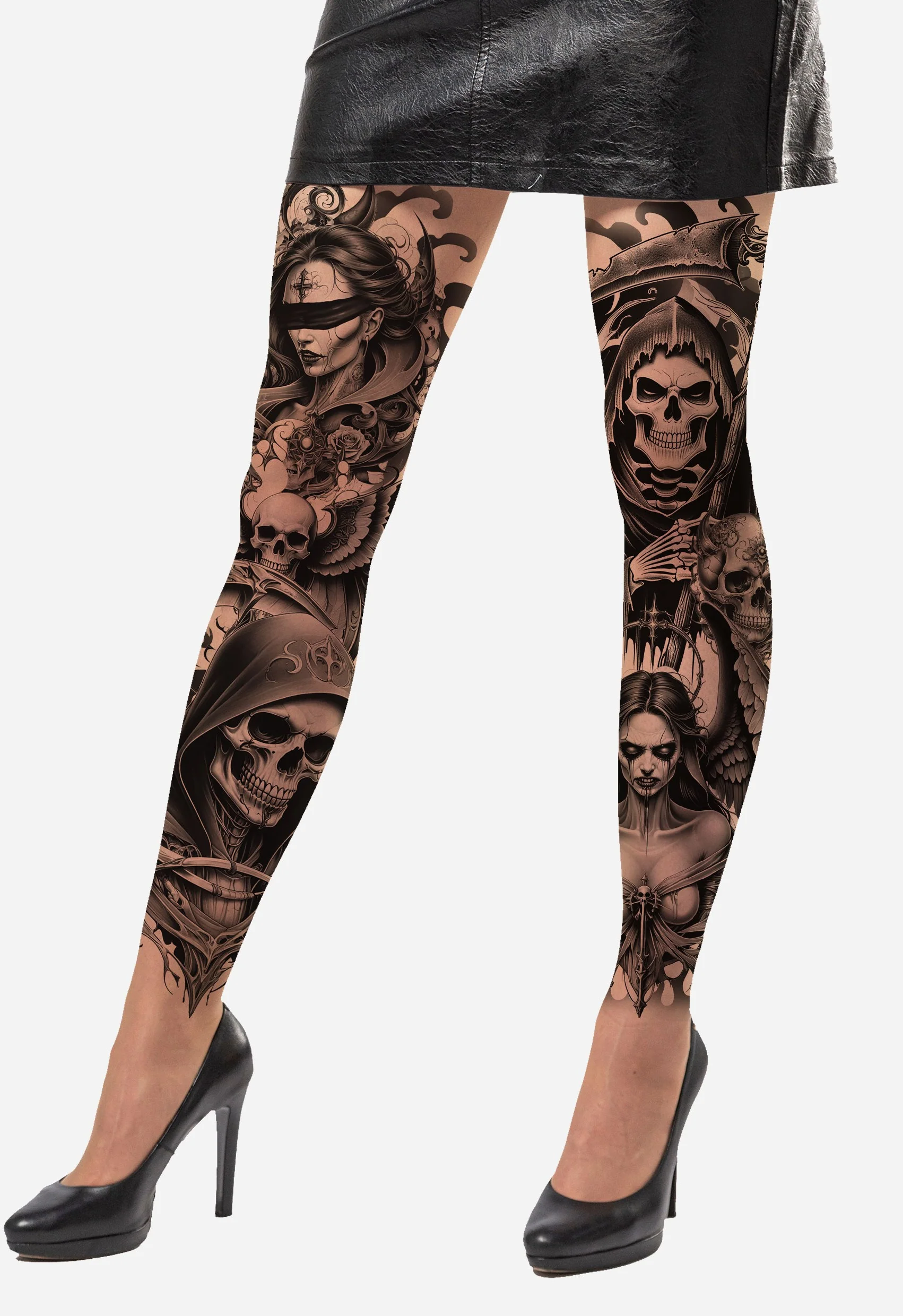 Stai cercando dei collant per il tuo costume di Halloween? Con i panty effetto tattoo per donna con tatuaggi della morte e angeli caduti avrai il complemento perfetto per una grande varietà di costumi di Halloween come la Morte, vampira, diavolessa, strega, sacerdotessa satanica e molti altri.