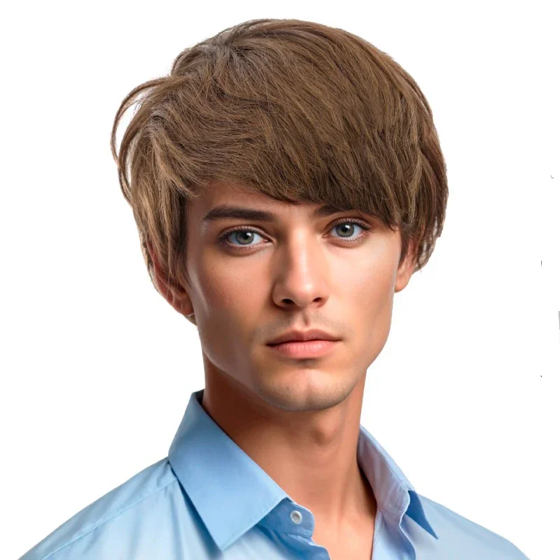 Stai cercando una parrucca castana per il tuo costume? Con la parrucca castana da uomo con capelli corti lisci avrai il complemento perfetto per una grande varietà di costumi e trionferai alla tua festa in maschera.