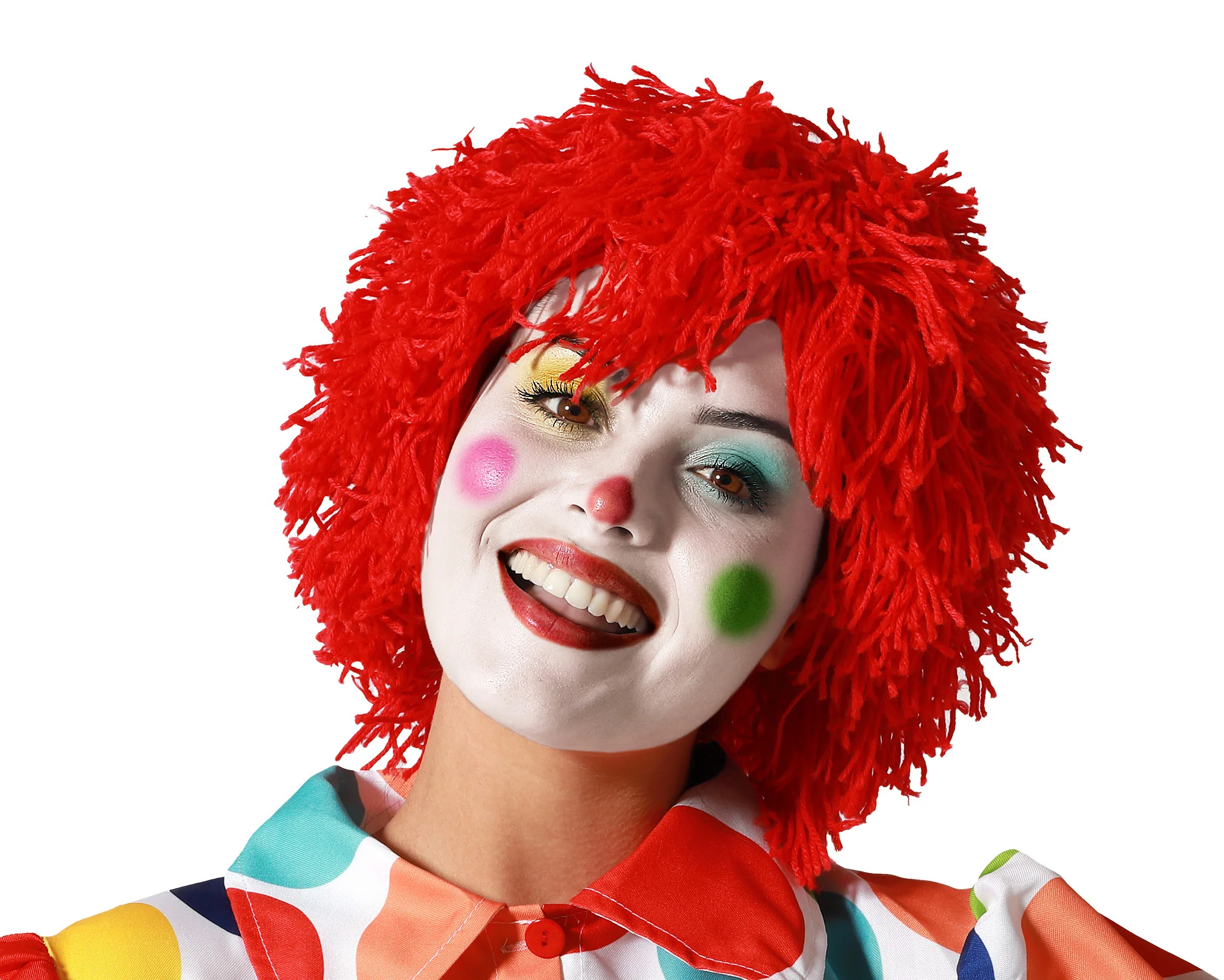 Stai cercando una parrucca da pagliaccio per il tuo costume? Con la parrucca da pagliaccio con capelli tipo lana di colore rosso avrai il complemento perfetto per travestirti da simpatico pagliaccio o pagliaccia e trionferai alla tua festa di Halloween.