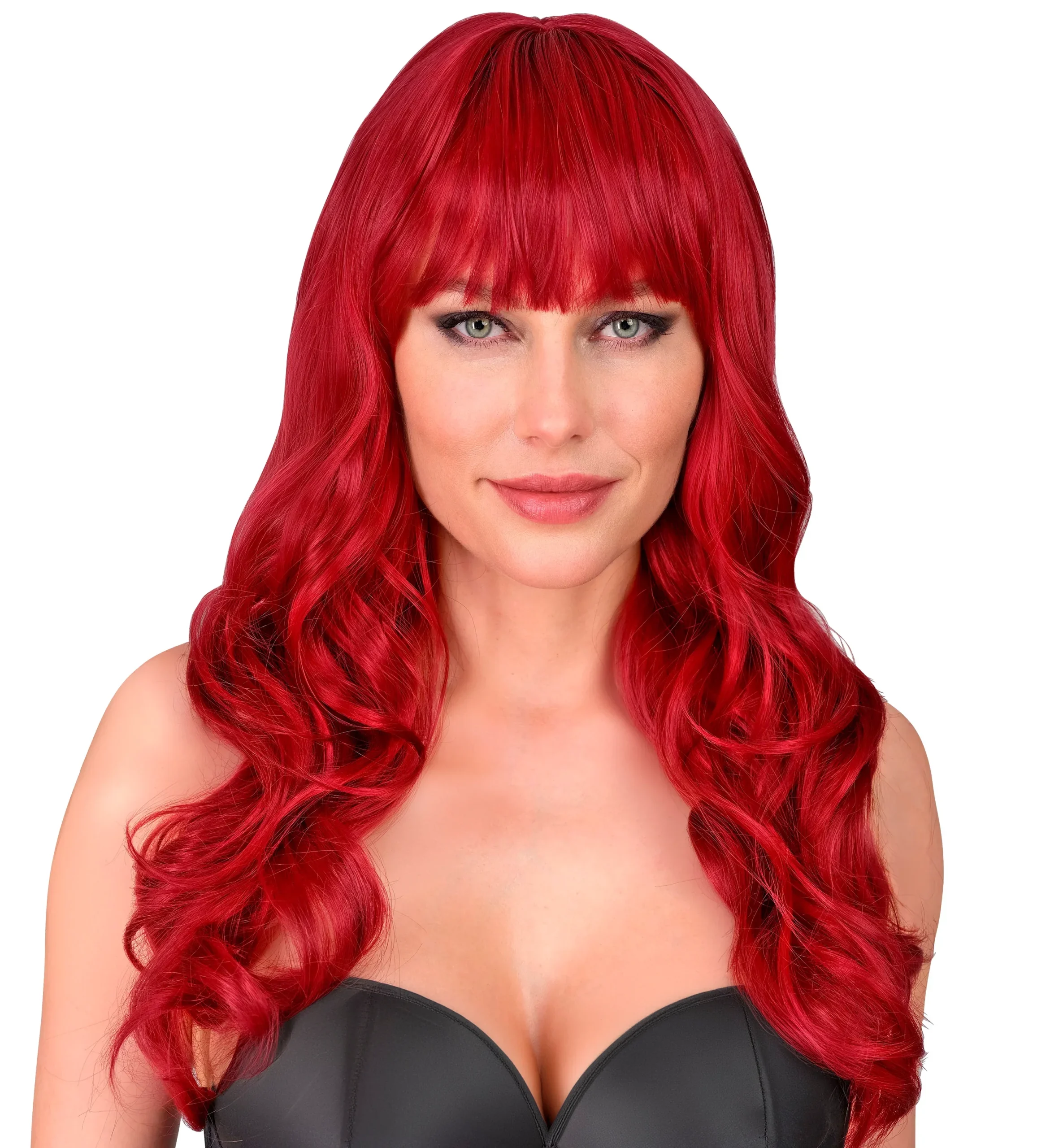 Stai cercando una parrucca rossa di qualità per la tua festa? Con la parrucca rossa mogano con chioma lunga di capelli ondulati e frangia dritta avrai un accessorio di massima qualità che potrai regolare per indossarla in modo aderente e comodo, e che potrai lavare a mano e pettinare con piastra fino a 120 ºC.