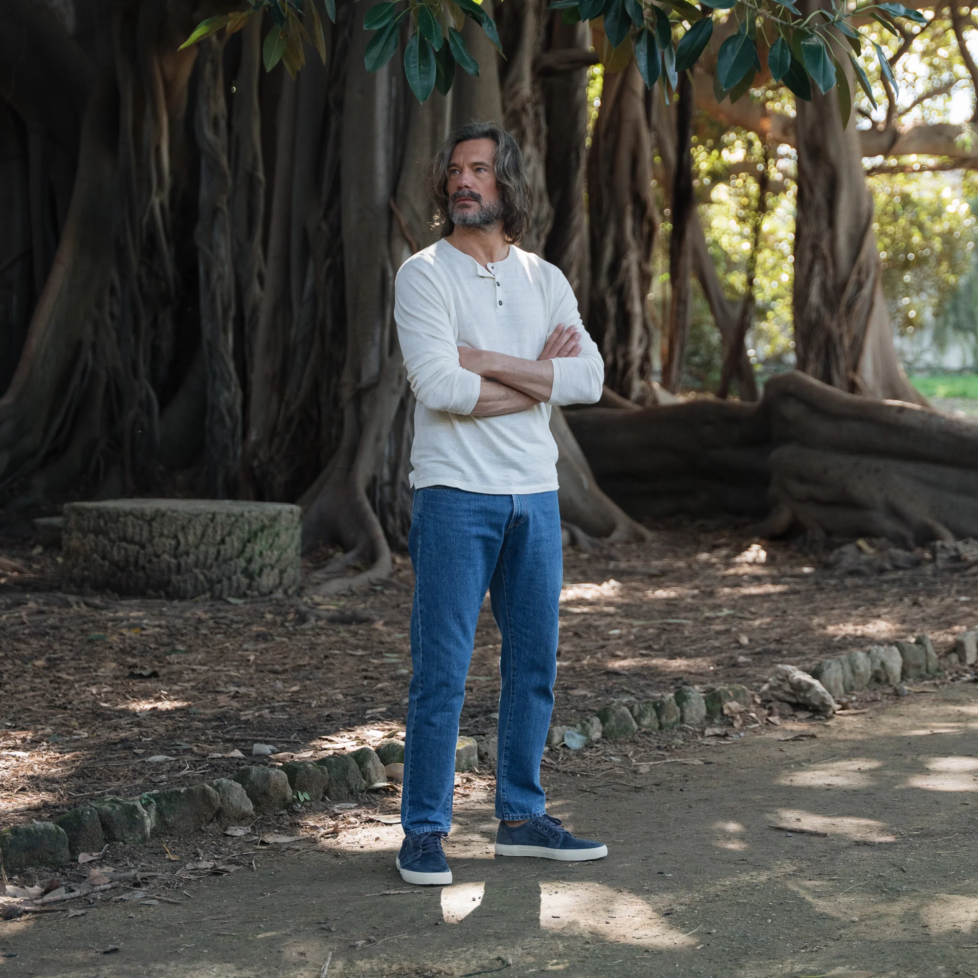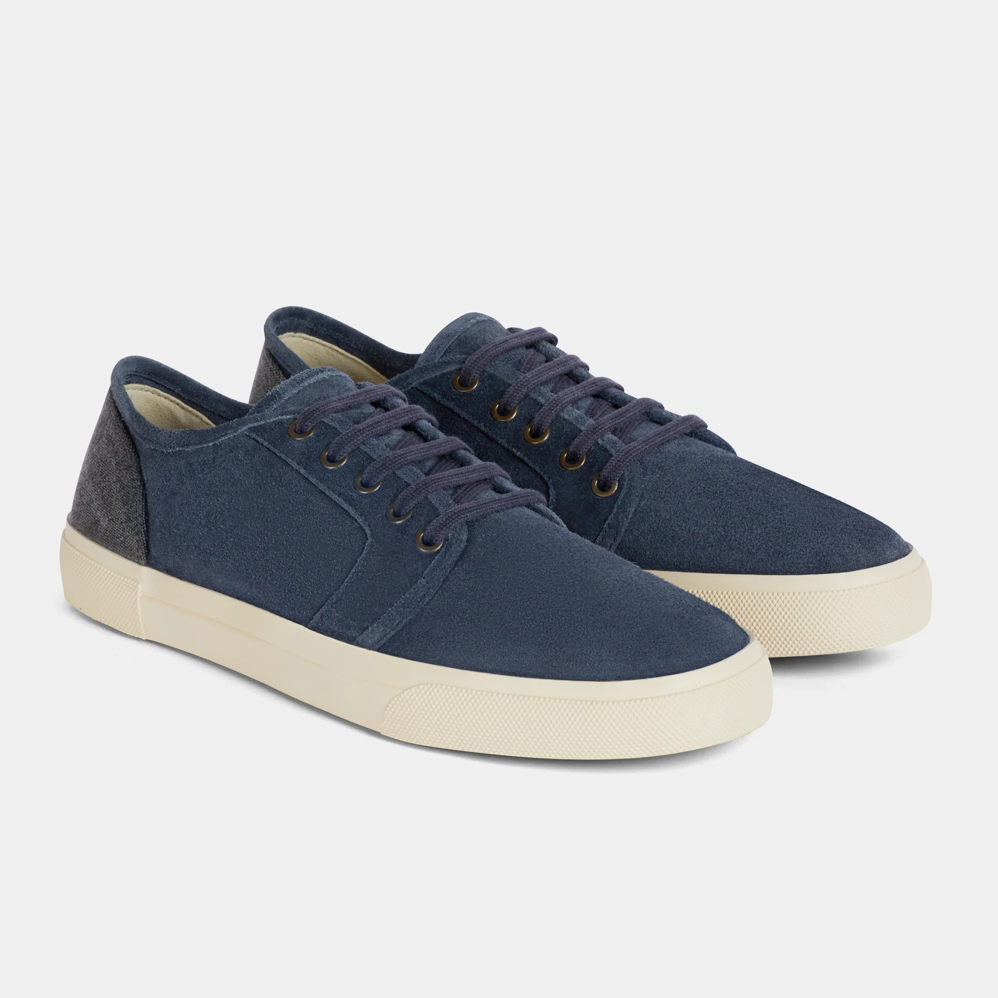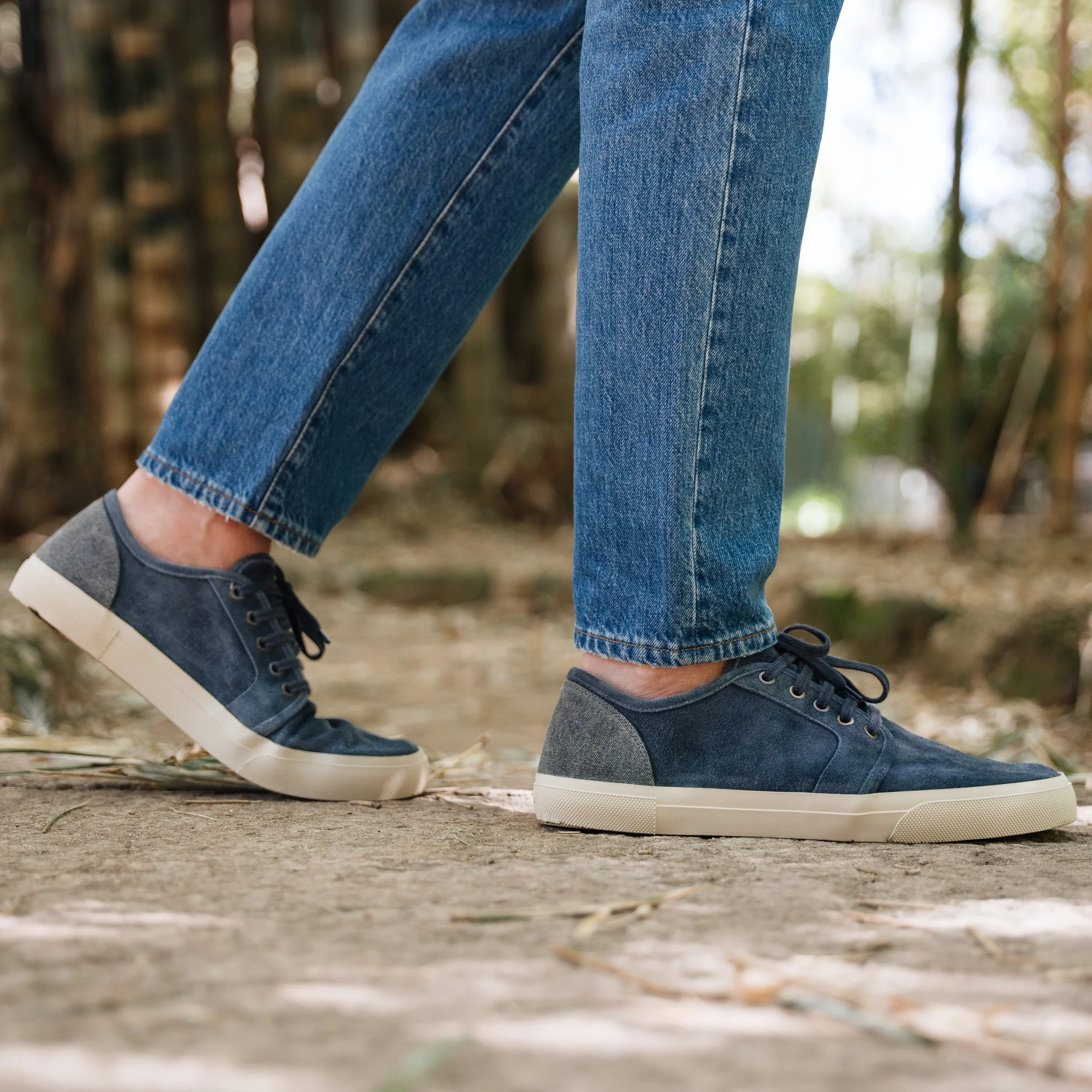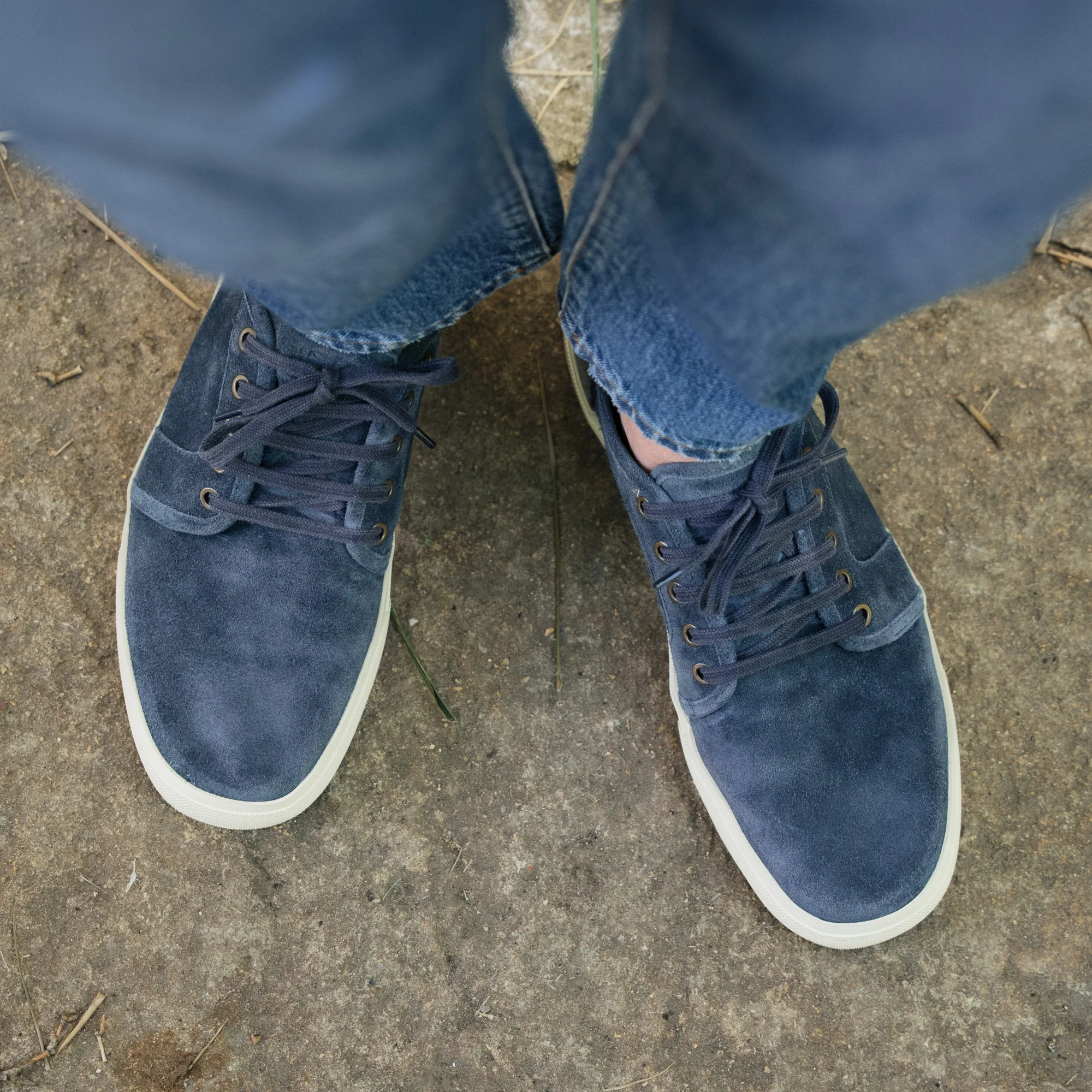 La nostra sneakers artigianale dall’effetto vissuto. Sfoderata, accoglie il piede con la naturale morbidezza della pelle scamosciata. La forma richiama i profili sportivi di una volta, con un rinforzo in canvas sul tallone: serve a sostenere la pelle nel tempo. Una scarpa che vive tra le sfumature del blu, verso un’estate senza calza.
