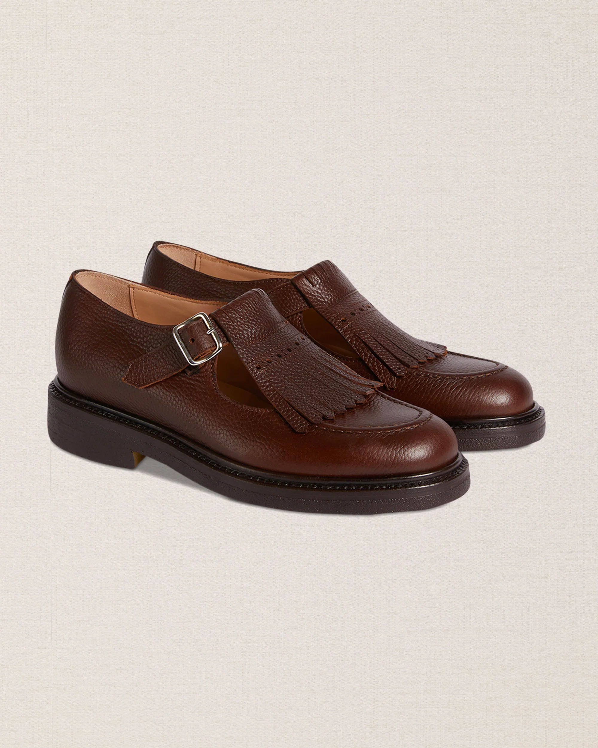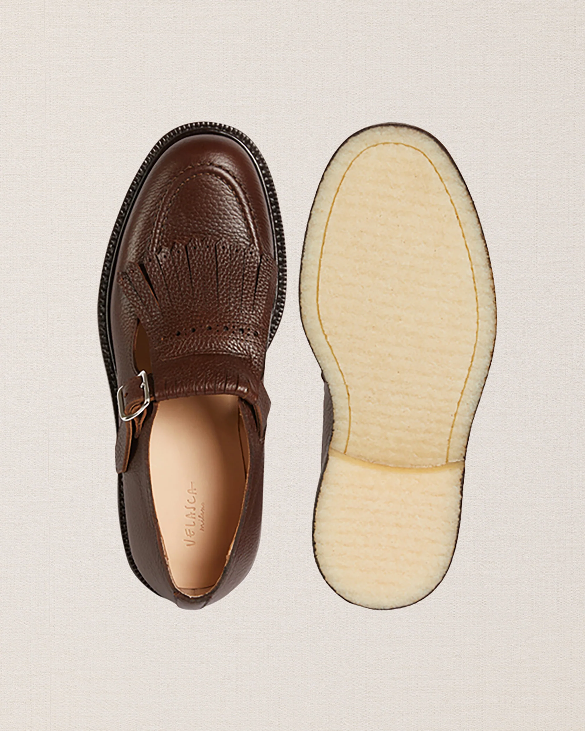 La nostra “1920” con la frangia e il cinturino. Suola in gomma para e punta ampia e arrotondata. Ti fa venire voglia di ballare? Fatta a Montegranaro (FM).