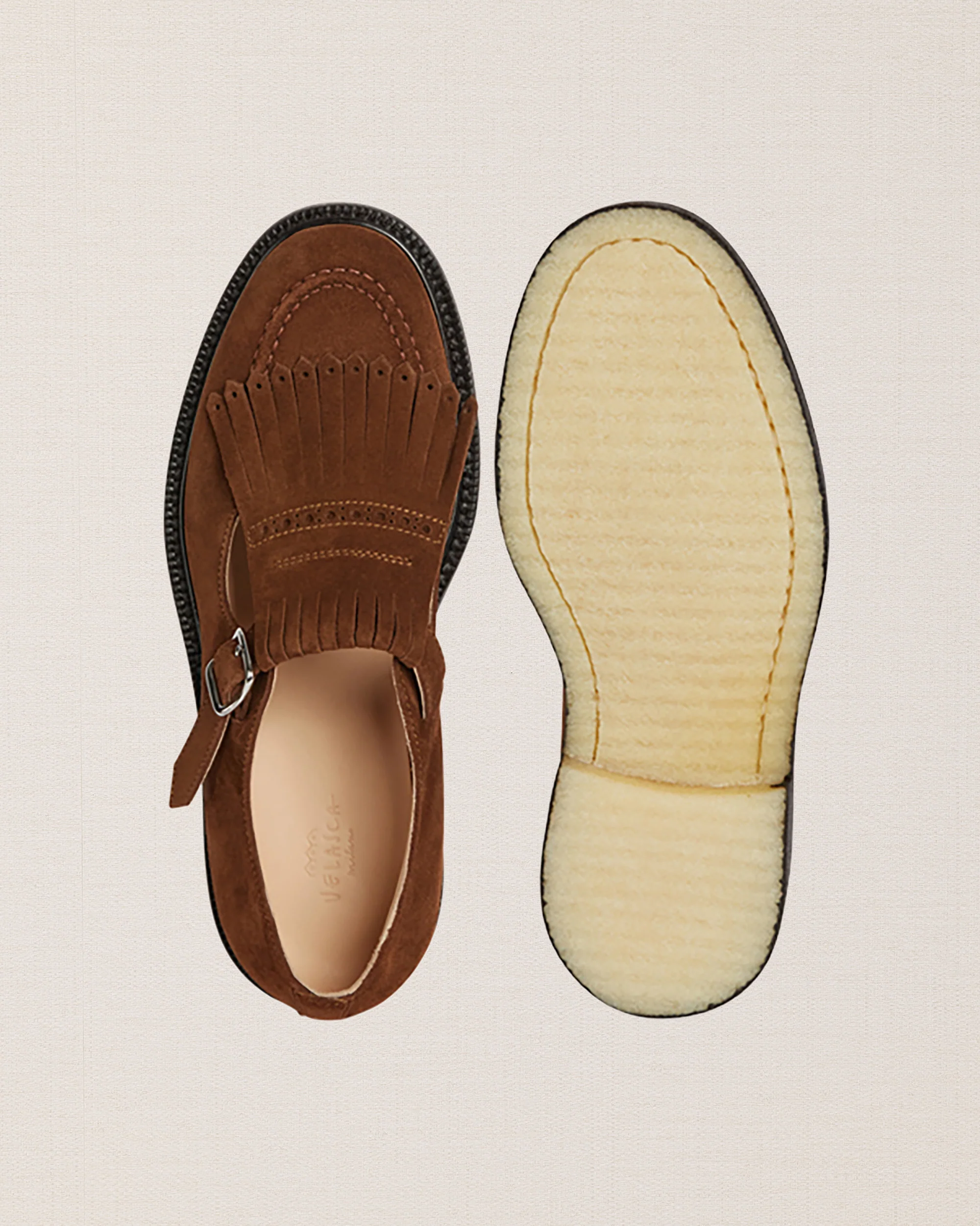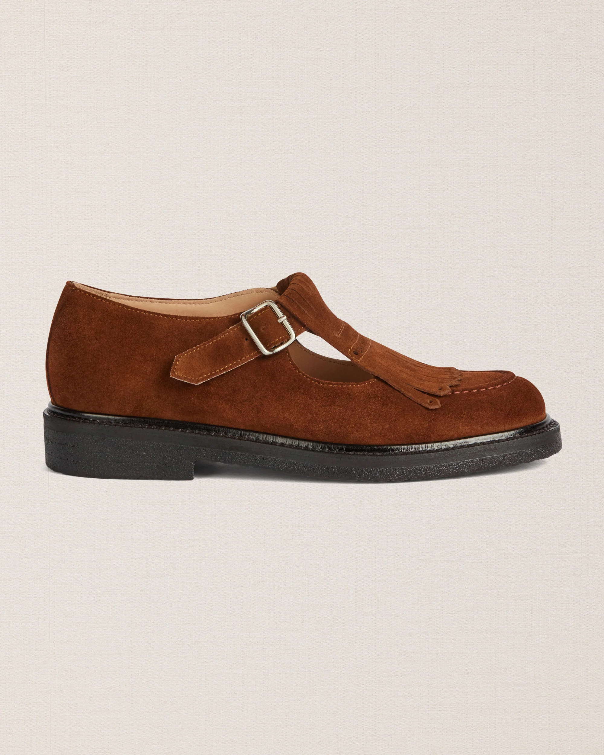 La nostra “1920” con la frangia e il cinturino. Suola in gomma para e punta ampia e arrotondata. Ti fa venire voglia di ballare? Fatta a Montegranaro (FM).
