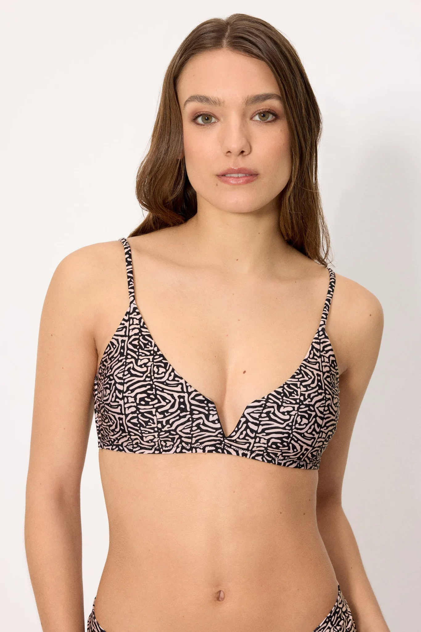 Reggiseno bikini a triangolo: senza ferretto con imbottitura removibile. Finitura lucida. Tessuto scintillante. Spalline regolabili. Abbinalo allo slip bikini coordinato per un look completo.