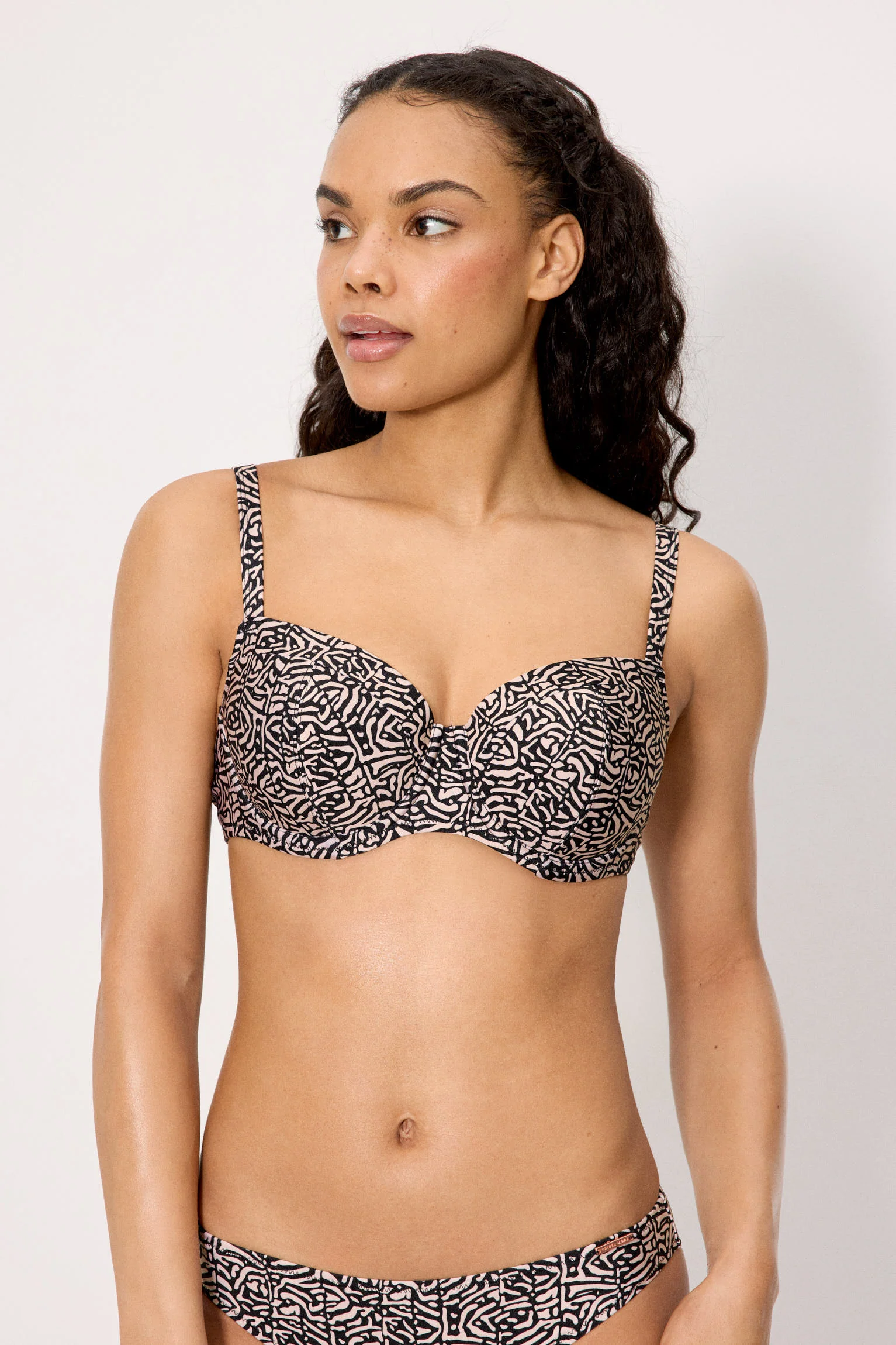 Reggiseno bikini con ferretto e imbottitura. Spalline posteriori regolabili in più posizioni. Tessuto lucido. Abbinalo allo slip bikini coordinato per un look completo.
