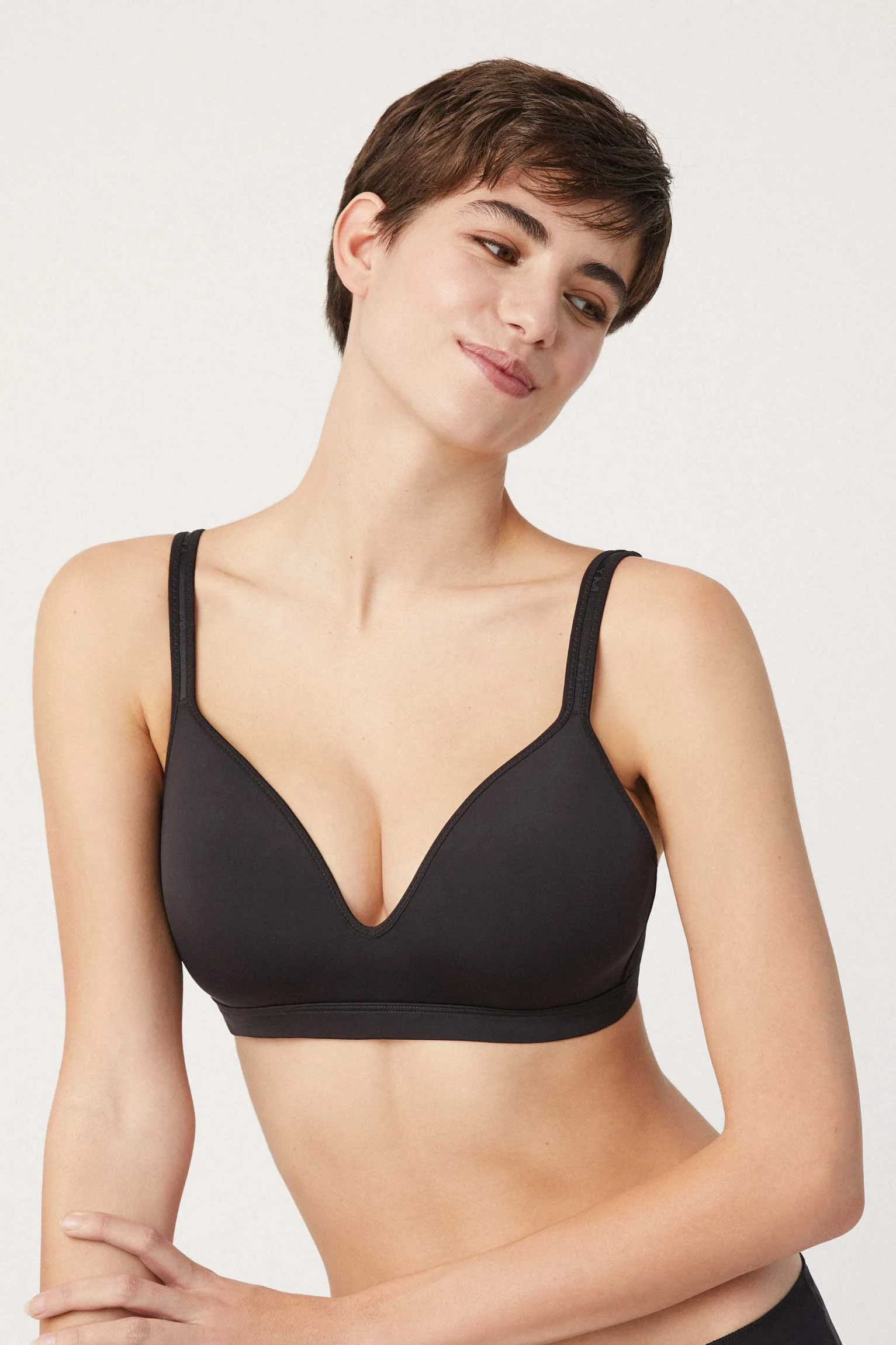 Nuova collezione Essentials. Reggiseno con chiusura ampia e interno foderato in microfibra che arriva fino a 4 posizioni per un maggior sostegno. Le sue coppe continue senza ferretto presentano un comfort extra. Le cinghie rinforzate con regolatori in metallo offrono il massimo supporto e controllo.