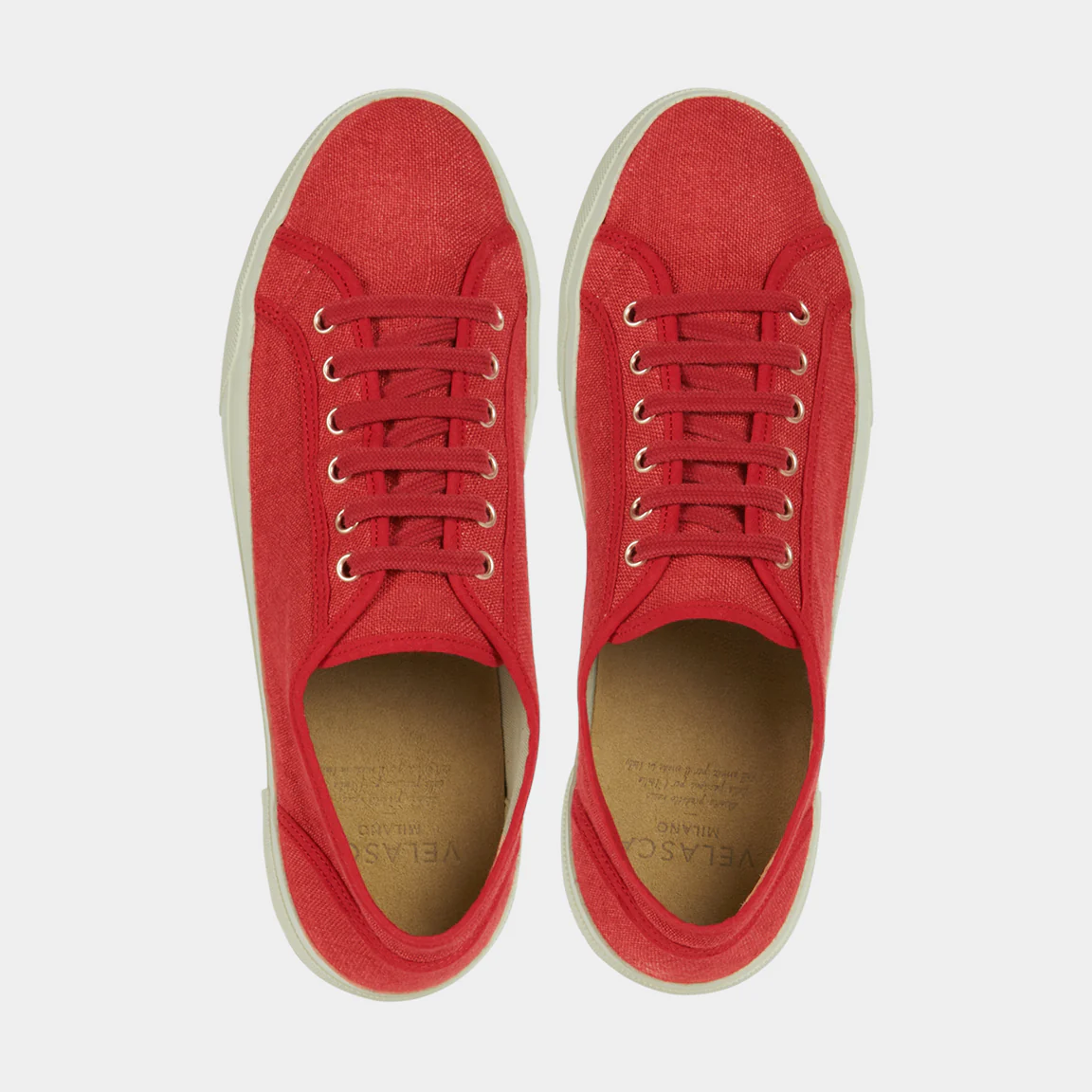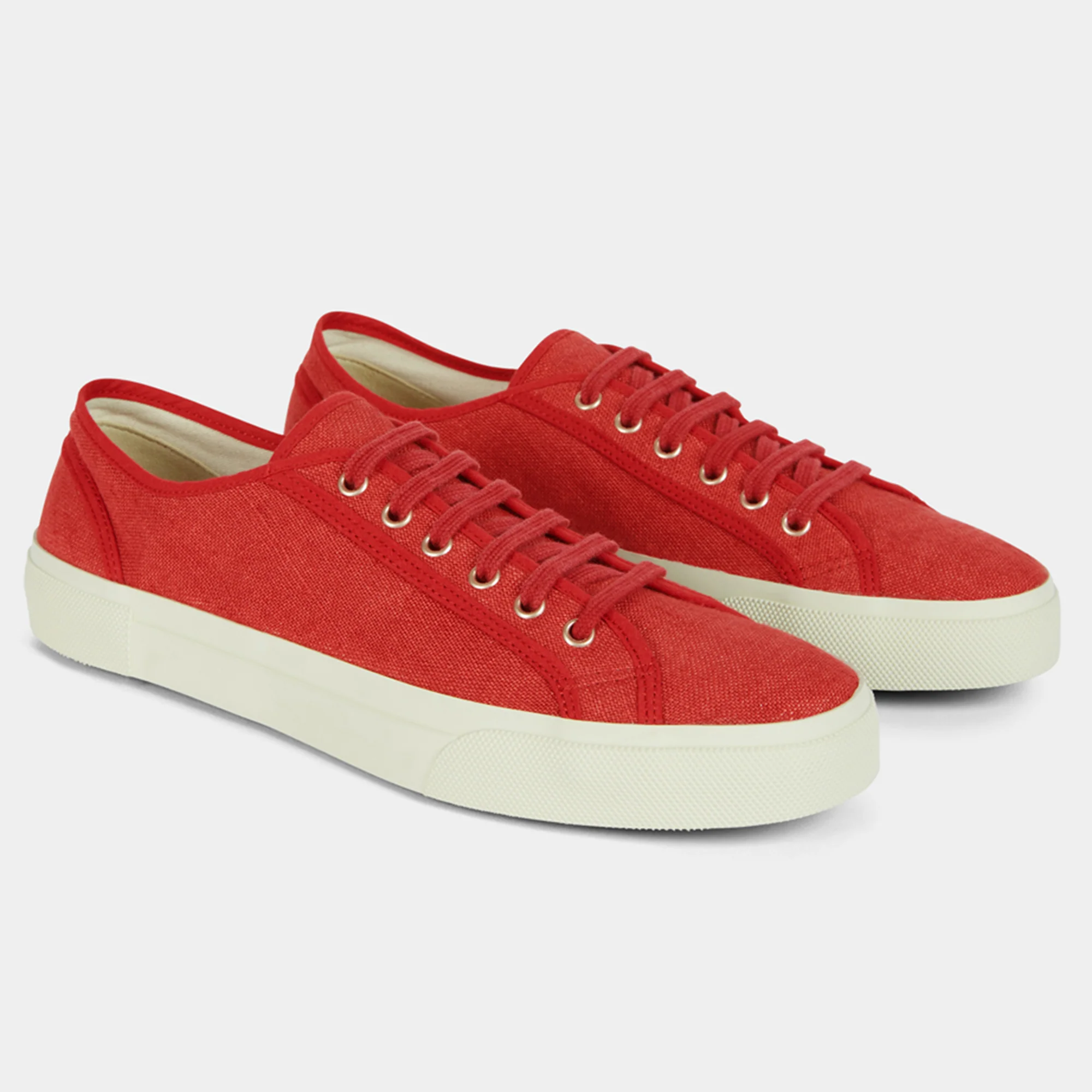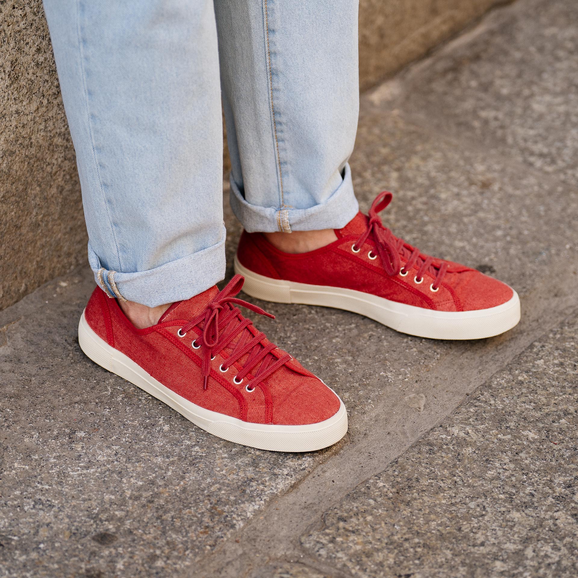 Le nostre Sneakers artigianali dall’anima vintage, in lino rosso. La suola è composta da una fascia in gomma, che avvolge e unisce la suola Vibram alla tomaia in lino. L’estate aspetta, le calze non sono invitate.