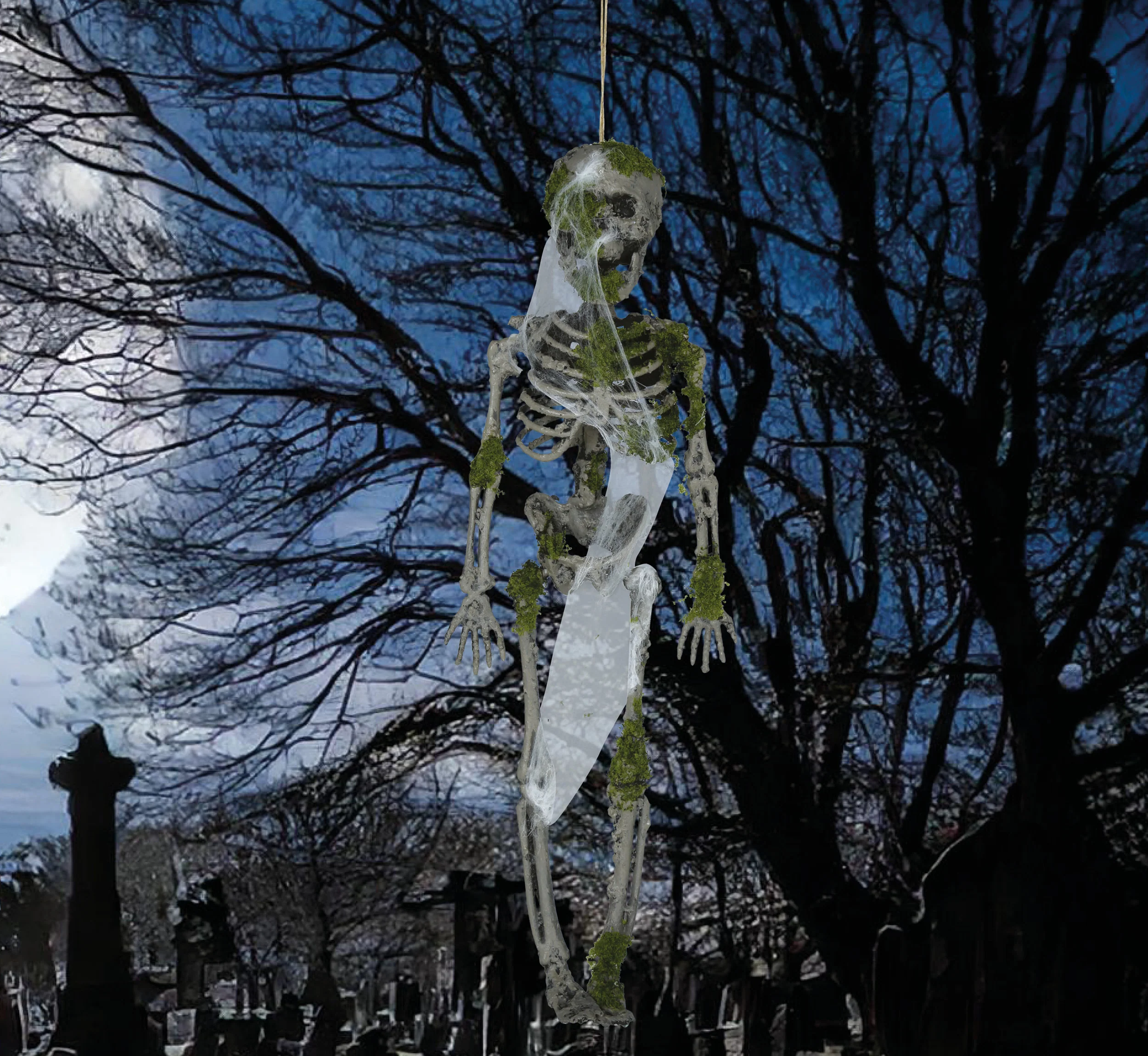 Stai cercando uno scheletro per decorare la tua festa di Halloween? Con lo scheletro appeso di 40cm con muschio e ragnatele avrai il complemento perfetto per decorare la tua casa o il tuo negozio nel modo più spaventoso questo Halloween.