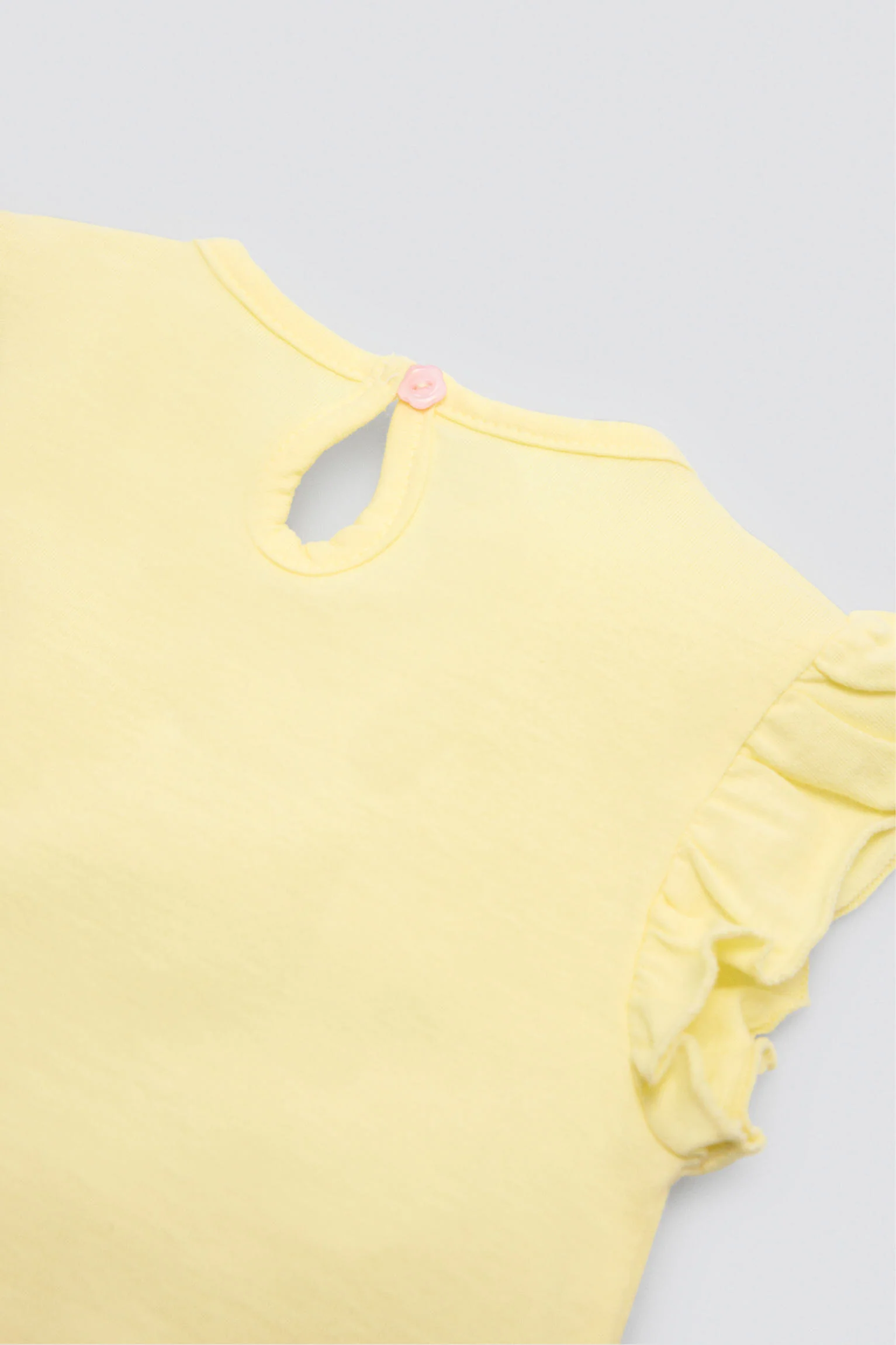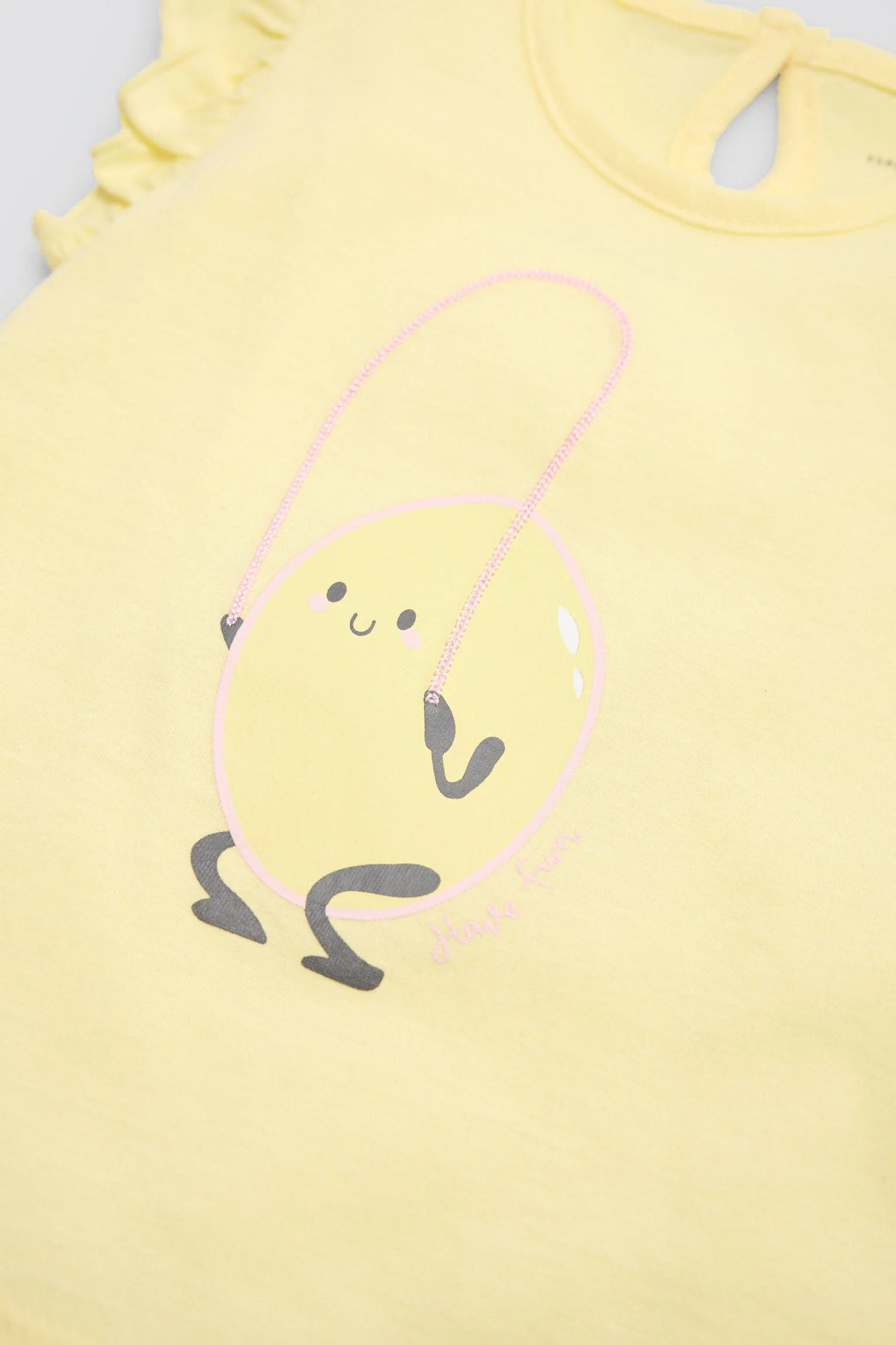 Completo due pezzi per neonato in cotone con motivi agrumati. Progettato senza maniche per offrire la massima libertà e comfort al piccolo.