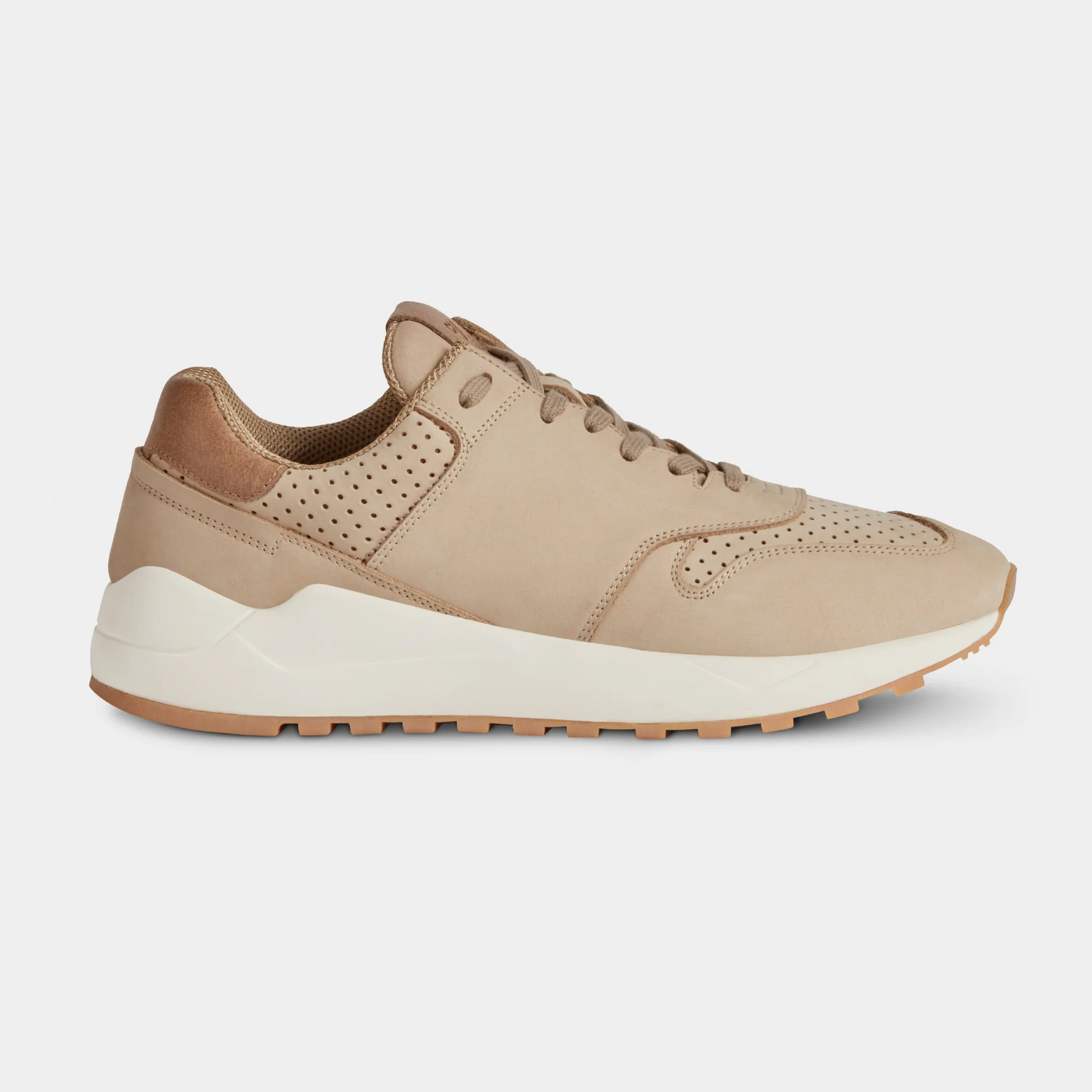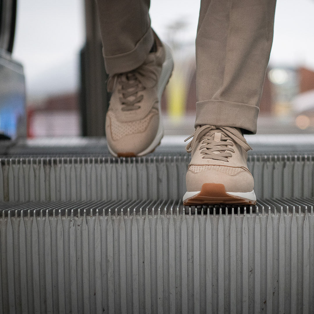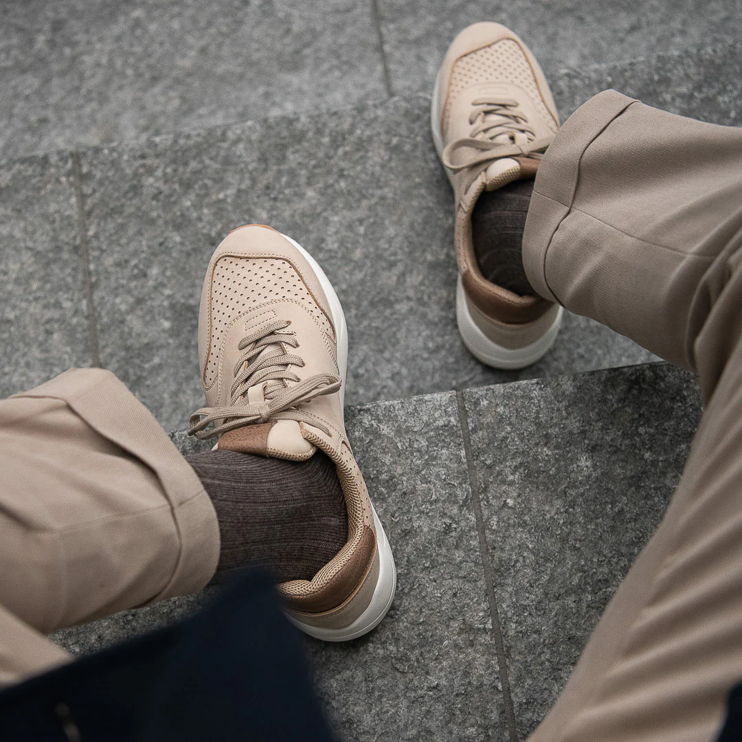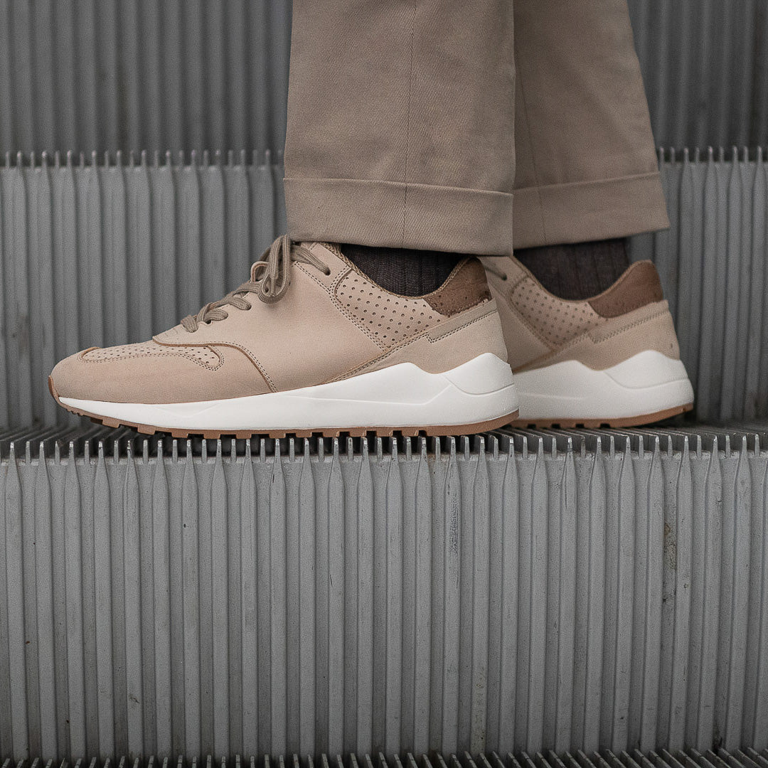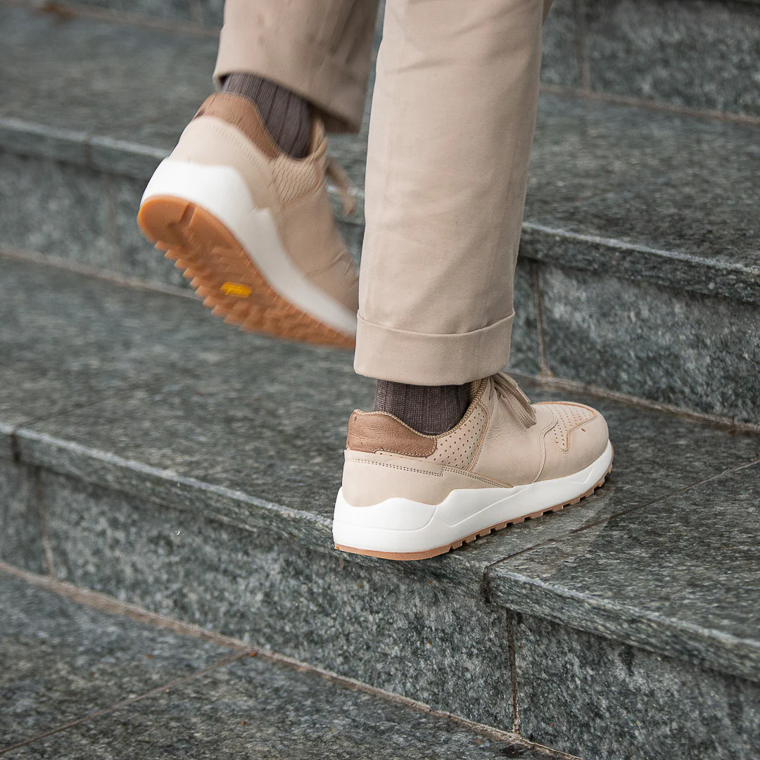 La nostra scarpa Running in pelle nubuck beige e suola con gomma Vibram per le tue giornate più sportive o semplicemente più casual. All’interno, l’abbiamo foderata in microfibra per renderla traspirante e abbiamo inserito una soletta con ammortizzazione: è removibile così la lavi facilmente. Stile un po’ vintage, nel paesaggio urbano più moderno; puoi anche portare con te le tue Running, grazie al comodo zaino a sacchetto incluso nella scatola.