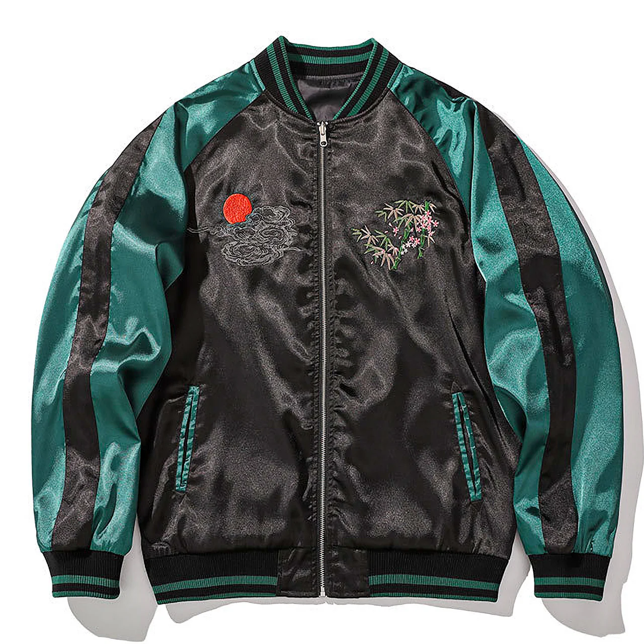 Realizzato in raso morbido e resistente, questo bomber giapponese offre un comfort impareggiabile. La fodera leggera e le finiture curate lo rendono un capo elegante e duraturo da indossare tutto l’anno.
