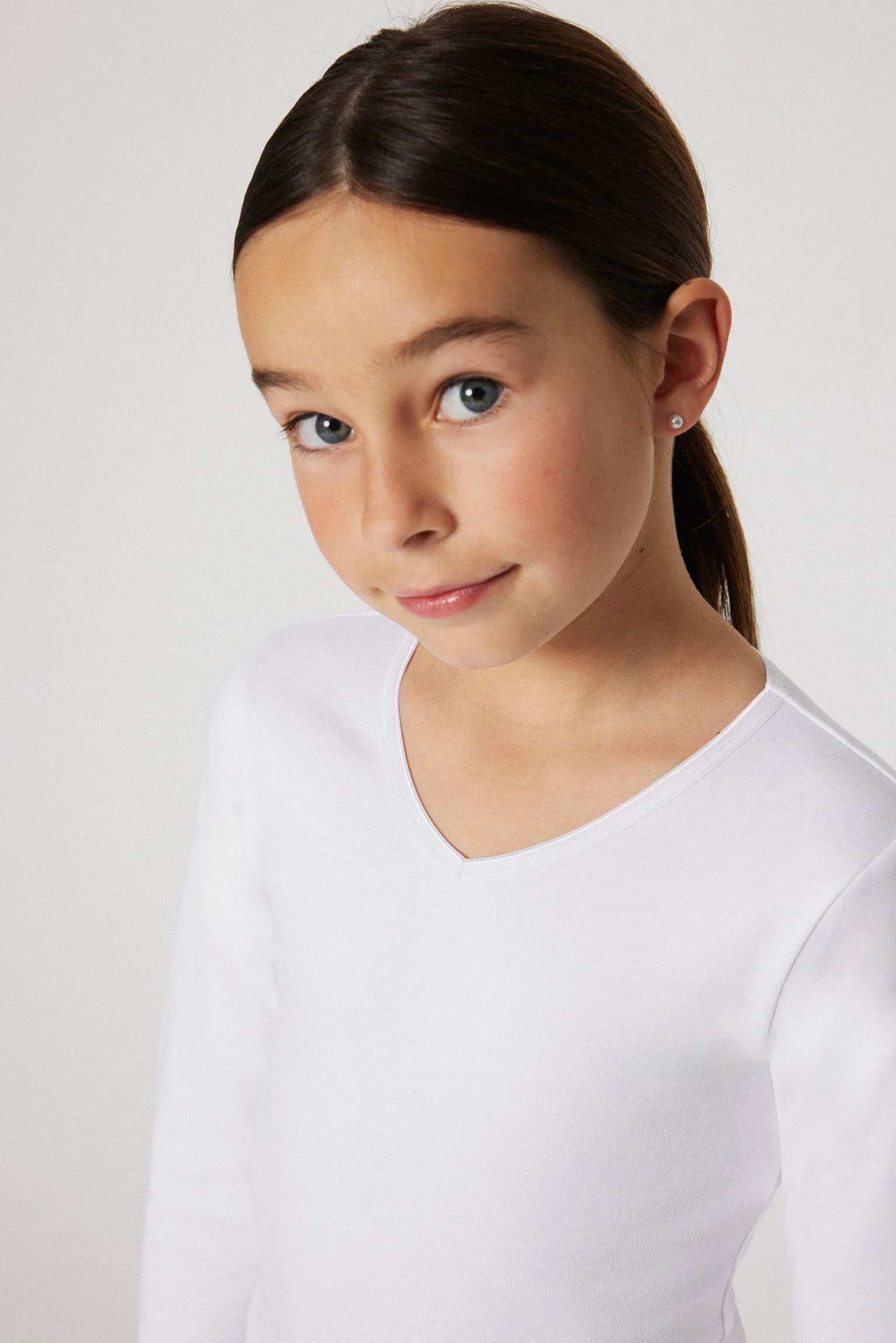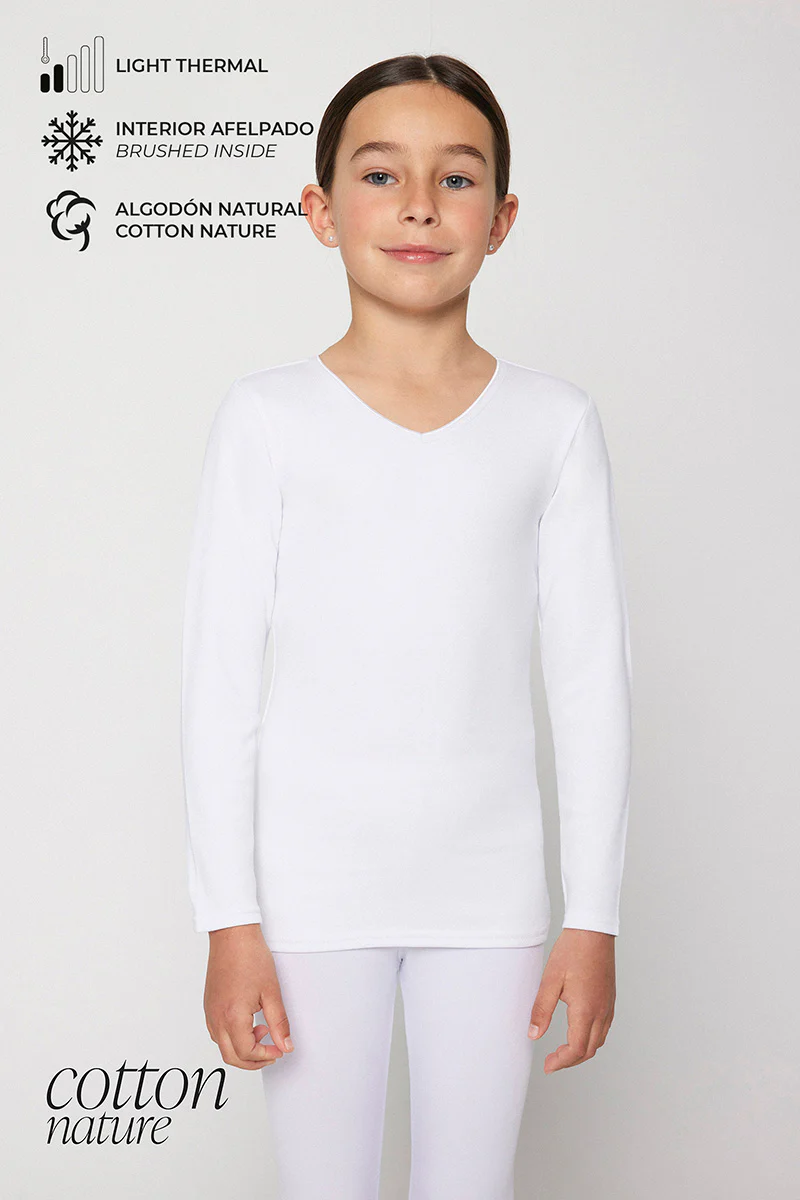 T-shirt termica per bambini a maniche lunghe in cotone con interno in peluche.