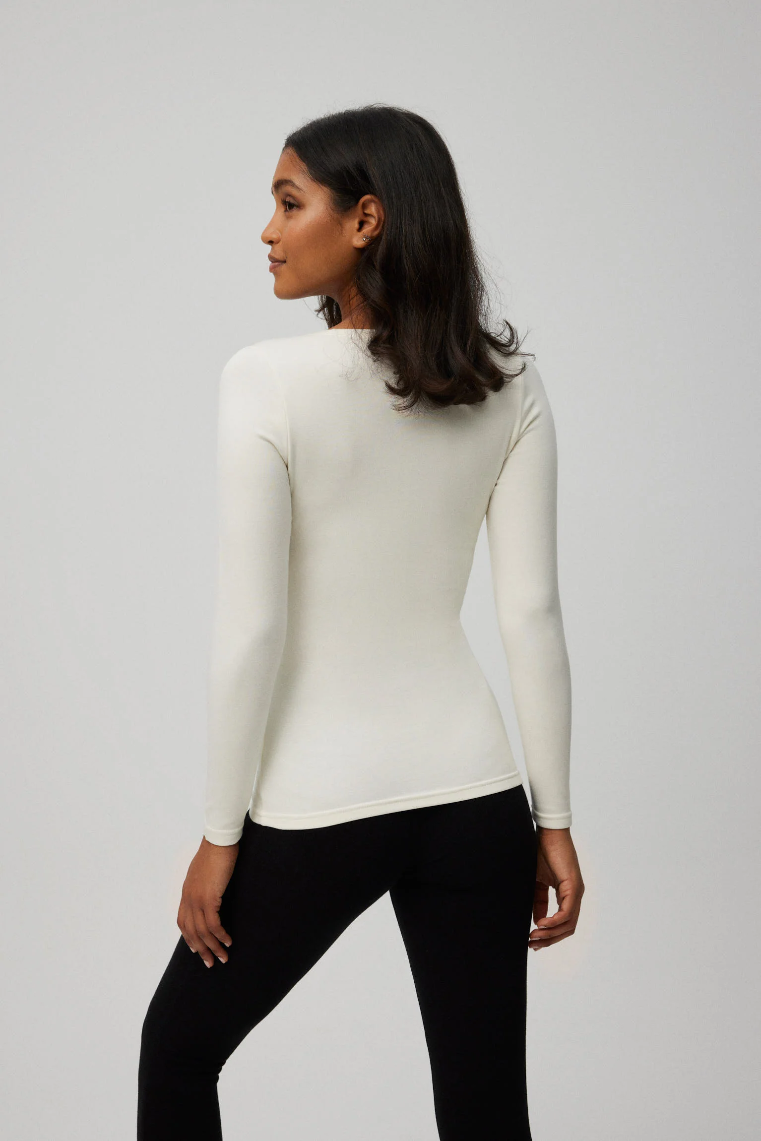 - Scollo rotondo e design maniche lunghe per maggiore copertura e comfort.
